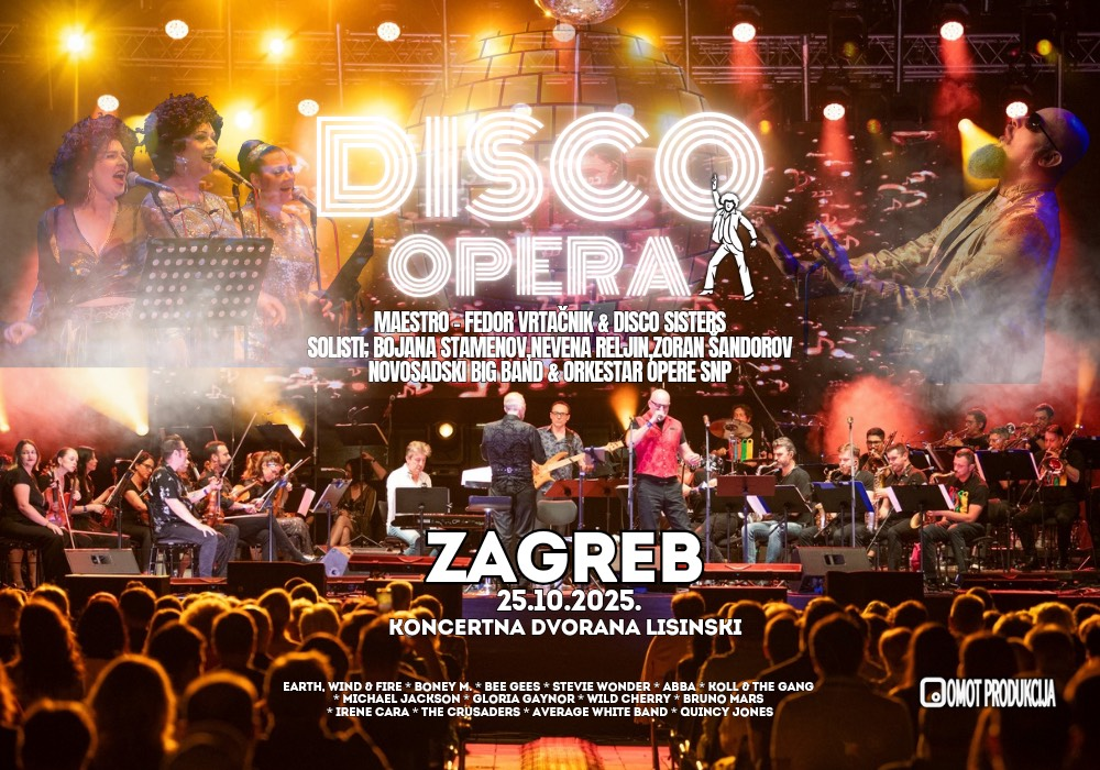 Nakon rasprodanih koncerata „Rock Opere“ diljem regije, veliki glazbeni projekt „Disco Opera 2025“ vraća se u Koncertnu dvoranu Vatroslava Lisinskog 25. listopada. Riječ je o produkcijski najzahtjevnijem disco programu u regiji, organiziranom u zajedničkoj suradnji simfonijskog orkestra, big banda, vrhunskih solista i članica zbora Opere.