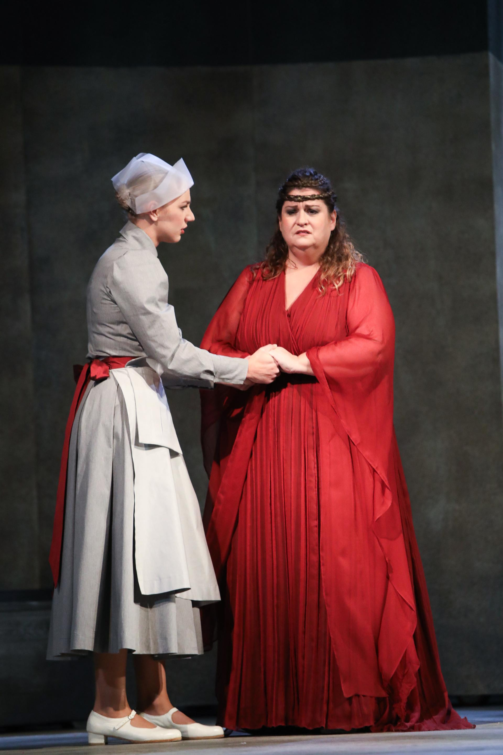 Nije slučajno upravo ta opera povjerena redateljici Dori Ruždjak Podolski, koja se kao suvremena umjetnica voli doticati i redateljskim rješenjima komentirati suvremeno društvo, a kao žena tematizirati položaj „ljepšeg spola” rastegnut između privatnog i javnog, nježnosti i snage, krhkosti i uspjeha. Sa svojim suradnicama, riječkim nagrađivanim umjetnicama, kostimografkinjom Manuelom Paladin Šabanović i scenografkinjom Paolom Lugarić Benzia, stvara postapokaliptičan distopijski svijet među zidovima napuštenog sanatorija, s elementima fašistoidnih uniformi osvajača i organskih materijala naroda među kojemu se izdvajaju svevremenske raskošne odore svećenica. Sanatorij je, kao i plinske komore i boce kao ubojita sredstva, u glavi Norme koja je od početka psihički labilna, osjeća se nesigurno, intiuitivno naslućuje nevjeru svojeg voljenog, čije je saznanje kroz ispovijest svoje pripravnice konačno slama.