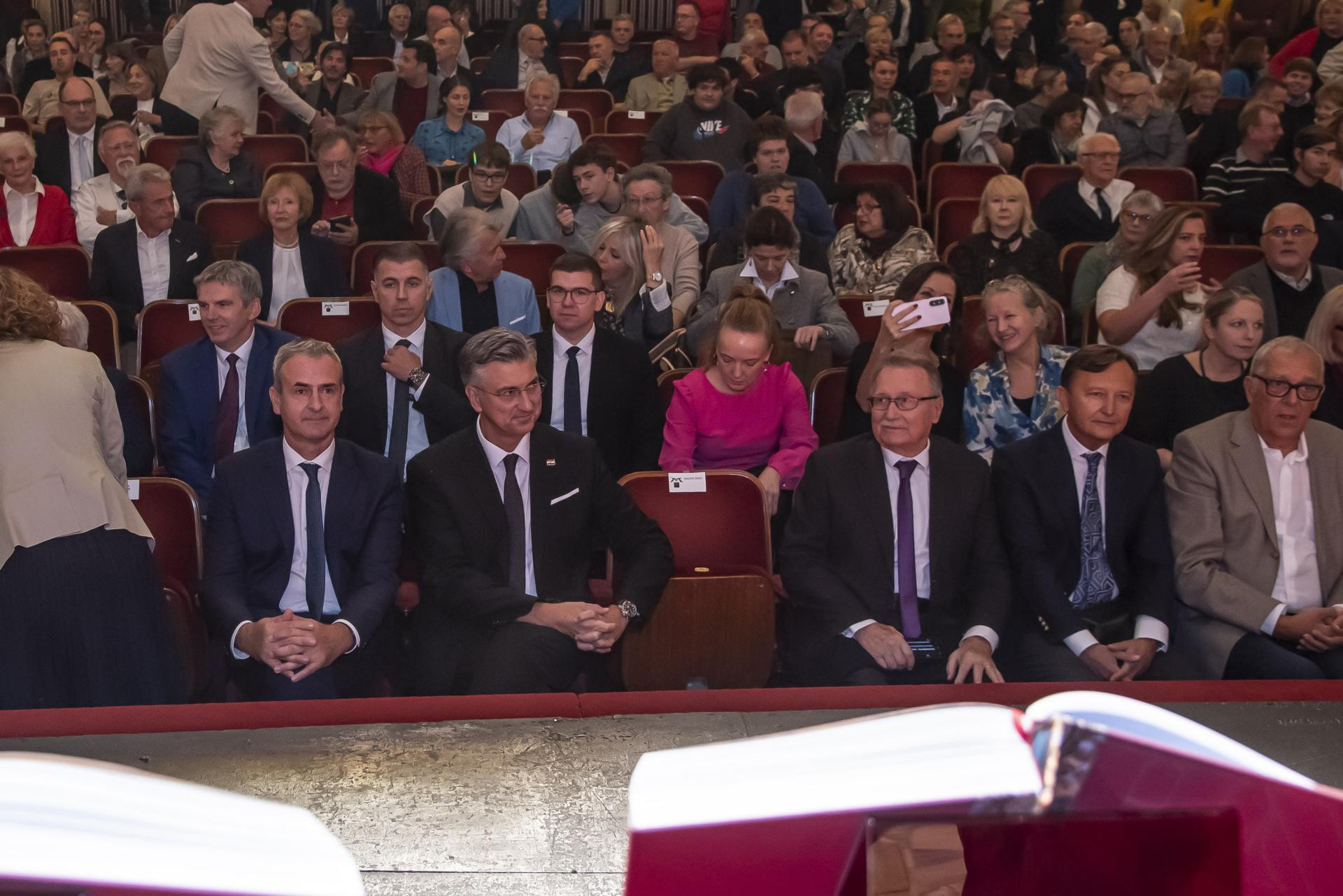 Vlada je osigurala 45 milijuna eura za izgradnju HNK2 i obnovu kompleksa kazališnih radionica, stradalih u potresu, što su komplementarni prostori prekrasnoj zgradi na Trgu, a obnovljena je i kuća Mile Dimitrijević, podsjetio je. Premijer je istaknuo kako je 1,6 milijardi eura Vlada uložila u obnovu baštine stradale u potresu, te je najavio skoro otvorenje Hrvatskog glazbenog zavoda. Na promociji je bila i ministrica kulture Nina Obuljen Koržinek, kao i mnoštvo umjetnika i rukovodećih koji su obilježili protekla desetljeća kazališta.