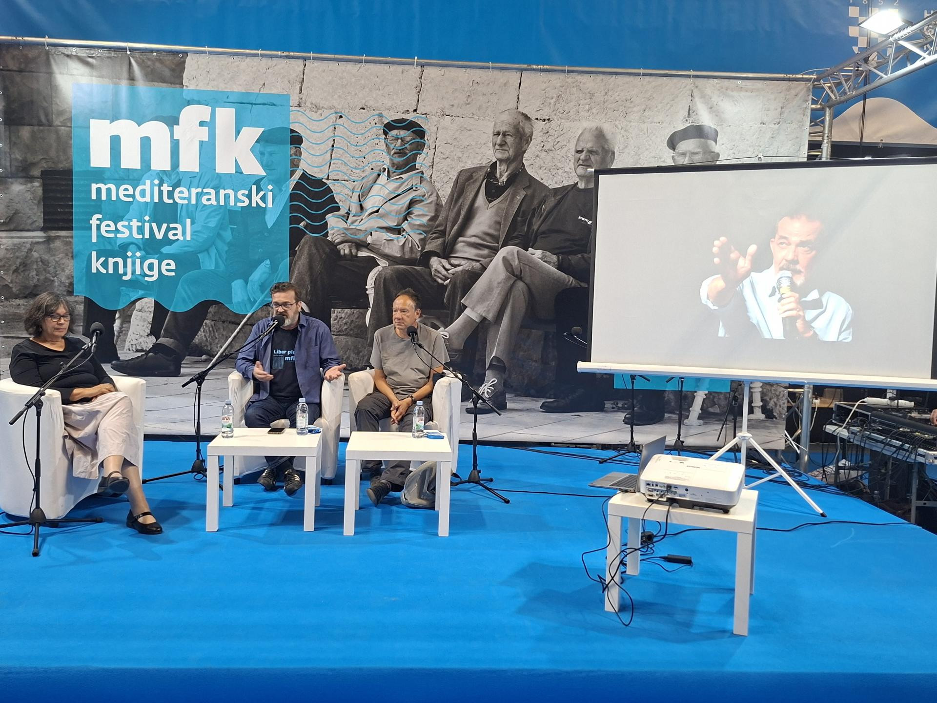 Drugi dan 8. Mediteranskog festivala knjige završen je odavanjem počasti jednom od najvećih hrvatskih književnika posljednjih desetljeća, nedavno preminulom Renatu Baretiću, čestom suradniku i pokloniku splitskog književnog festivala. O njegovom djelu, novinarskom i književnom, govorili su urednik programa MFK Kruno Lokotar te Baretićev prijatelj i kolega iz novinskih i književnih krugova Jurica Pavičić i književnica i prevoditeljica Alida Bremer.