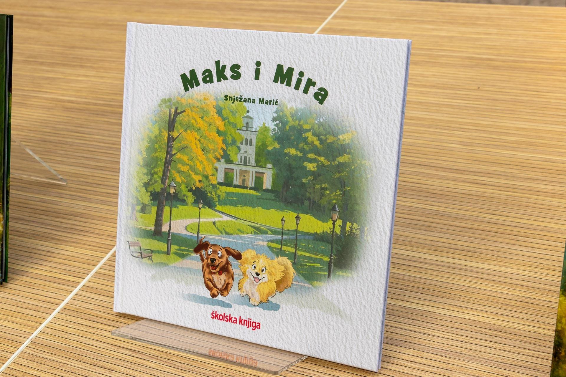 U slikovnici "Maks i Mira" kratkodlaki jazavčar Maks i čupava mješanka Mira zaigrani su, pak, vodiči kroz zagrebački park Maksimir i njegove najpoznatije znamenitosti. Maks je gospodski pas, brižno uređen, uglađen i strog, a Mira je vrckava, slatka, zaigrana kujica. Upoznaju se na Livadi kišobrana i zajedno provedu nezaboravan dan. S Livade kišobrana radnja se seli do Dedeka, velikog hrasta lužnjaka, najstarijeg stabla u Maksimiru, starog otprilike 600 godina. Zatim odlaze do Mogile pa do obližnjeg Vidikovca, a onda do Labudnjaka i Prvoga maksimirskog jezera kako bi se divili skulpturi Napuljski ribar. Na kraju posjećuju Jeku, jedini sačuvani paviljon u Maksimiru.