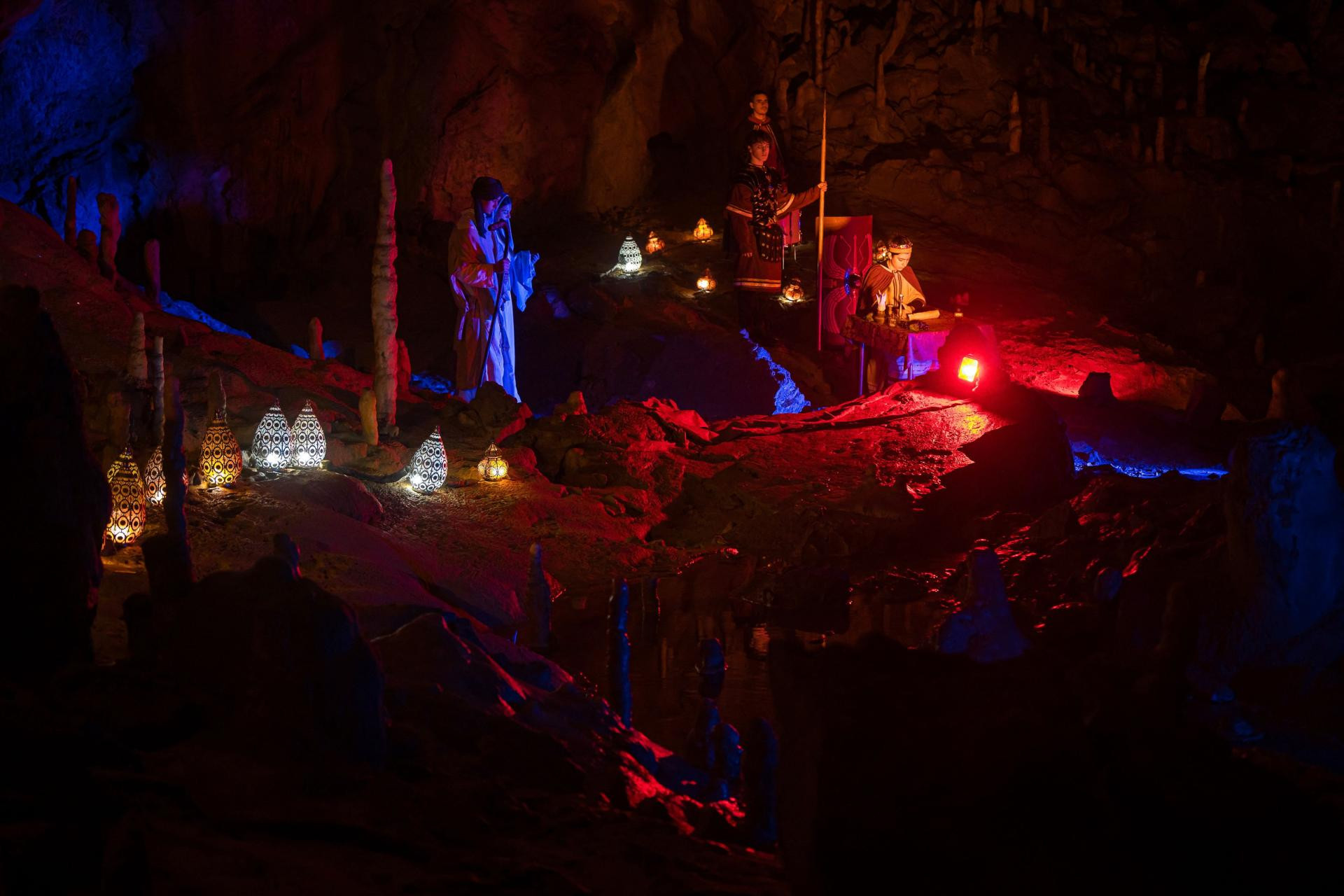 Ulazite u božićni vlakić koji vas uz zvukove zvončića uvodi u utrobu jame. Odjednom - plavi anđeo ispred vas. Vlak staje, a pastir i anđeo pozivaju vas da siđete i krenete u avanturu. Impresivan glas ori se prostorom koji obasjava ljubičasta i plava svjetlost.