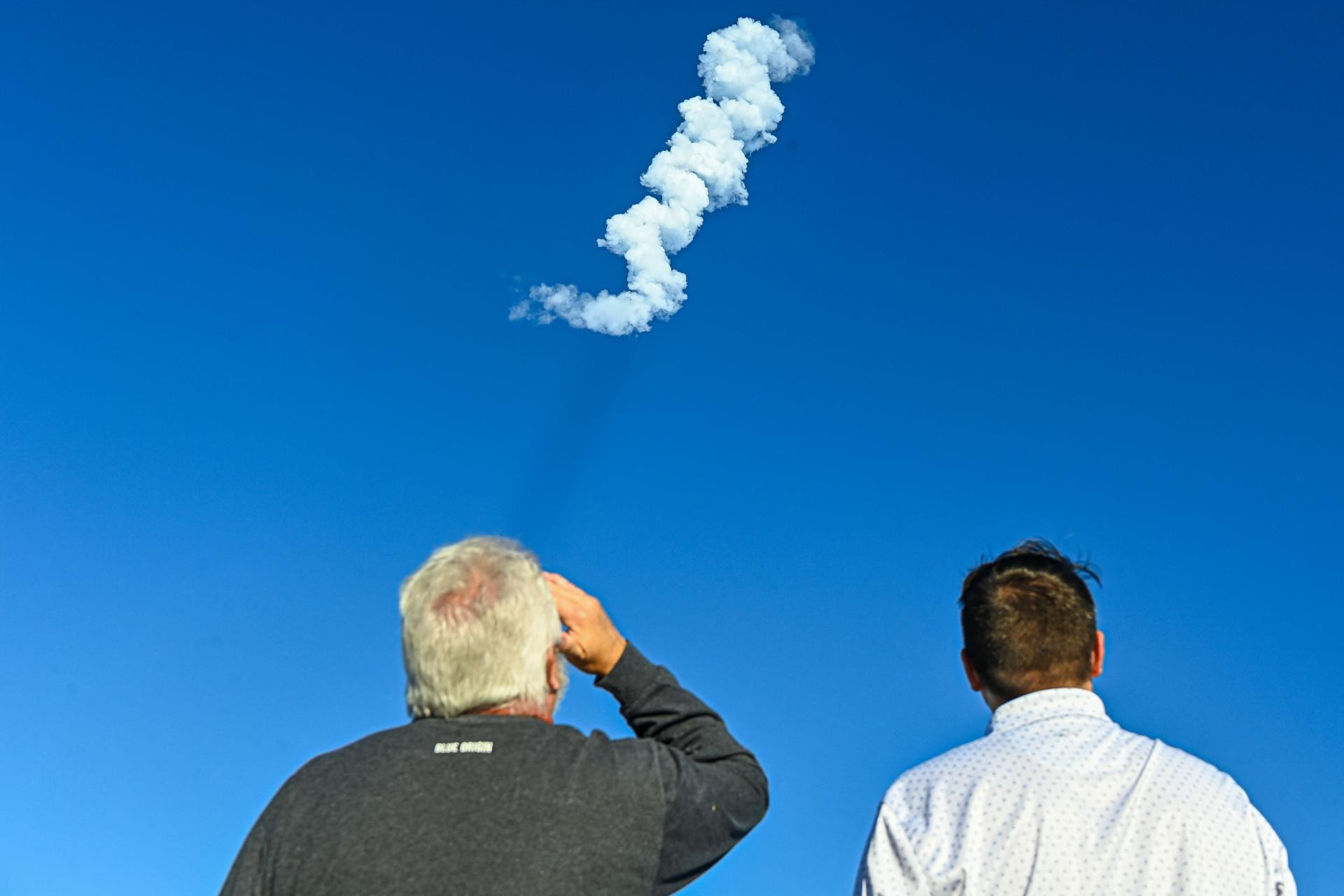 Web prijenos uživo tvrtke Blue Origin prikazao je raketu kako se uzdiže s lansirnog tornja kroz vedro popodnevno nebo u grmljavini plamena i oblacima pare.