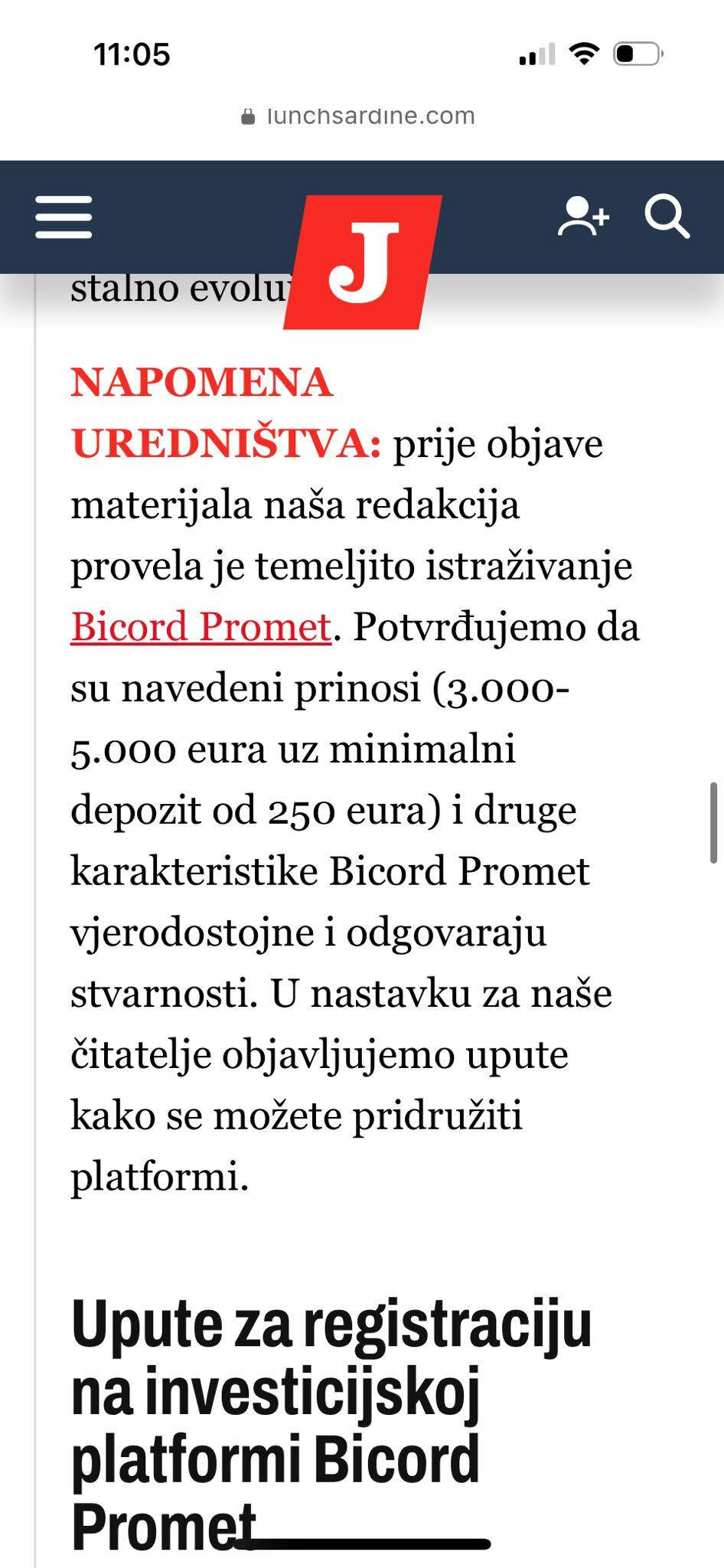 Ovaj put se društvenim mrežama proširio članak u kojem se čitateljima daju tobožnje upute za registarciju na jednoj od investicijskih platformi, a sve pod egidom lažne priče o Giorgiju Armaniju. Štoviše, u njemu čak stoji da je "uredništvo prije objave provelo temeljito istraživanje" navedene platforme te se daju upute kako bi se korisnika navuklo na uplaćivanje novca.