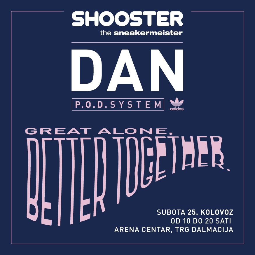 Ovaj Shooster Dan je super prilika da Hrvatsku bolje upoznamo s novom P.O.D.System tenisicom koja je već zaludjela i ženske i muške streetstylere iz cijelog svijeta. Ove jeseni pod geslom "Great alone, better together.", stiže jedna od najuzbudljivijih tenisica iz adidas Originals obitelji. Radi se o P.O.D-S3.1, koja proizlazi iz bogate baštine adidasovog sustava estetike i tehnologije, te ih odlikuje trodimenzionalni dizajn potplata.
