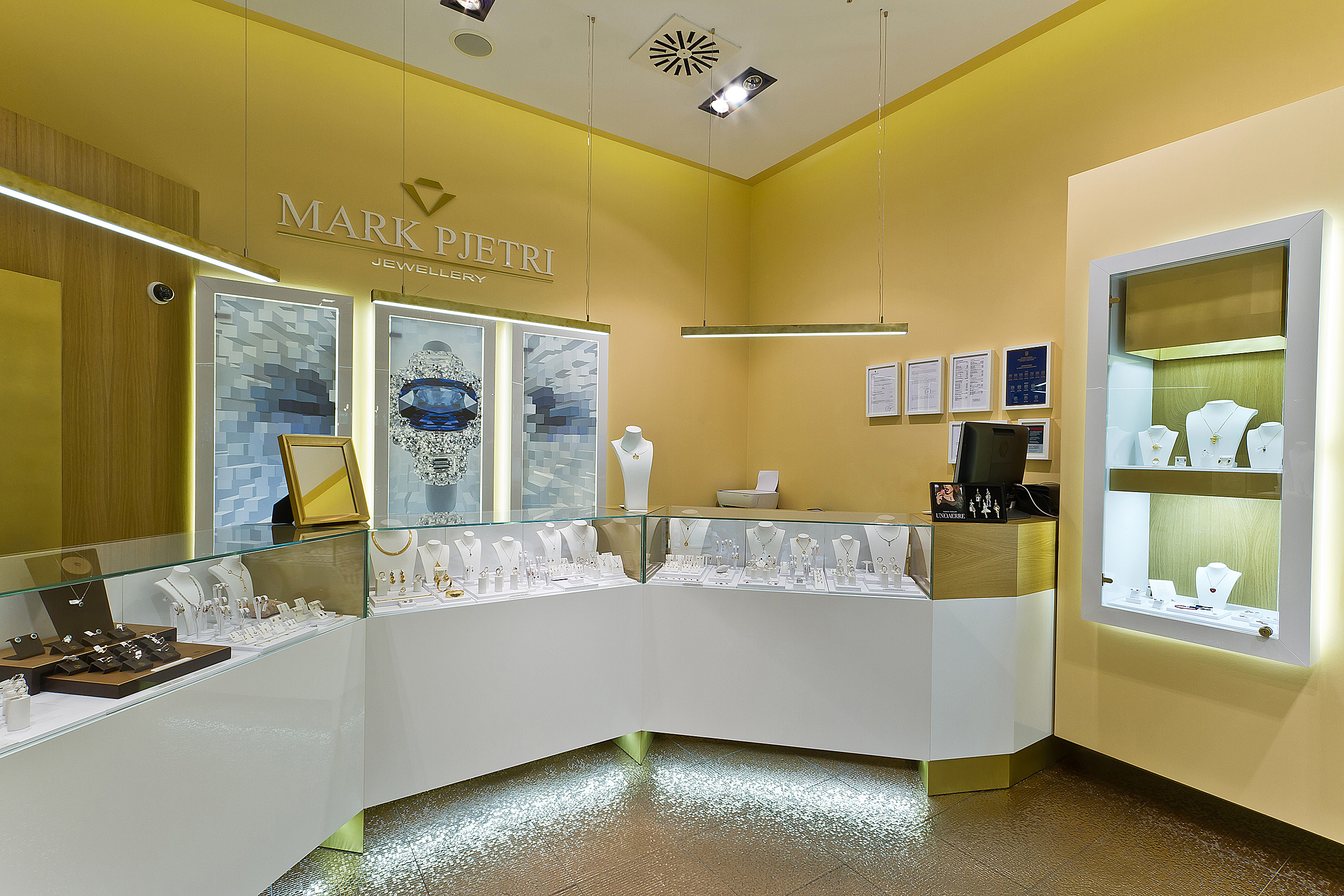 U elegantnom prostoru zlatarne Mark Pjetri, opremljenom u skladu s luksuznom ponudom, izloge i police krasi raznovrstan nakit. Kupci različitih ukusa i želja ovdje mogu naći unikatne komade autorskog nakita kao i nakit poznatih brendova, tematske kolekcije, koralje, dječju srebrninu, luksuzne satove, pisaći pribor i okvire za slike a klijentima se također nude i brojne profesionalne usluge poput popravka nakita, nizanja bisera, graviranja te izrade nakita po želji.