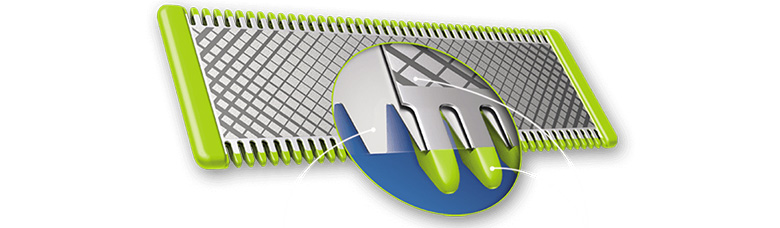 OneBlade prati konture tvog lica i omogućuje efikasno i ugodno podrezivanje i brijanje na svim djelovima lica. Glatki premaz i zaobljeni vrhovi oštrica dizajnirani su za dvostruku zaštitu tvoje kože.