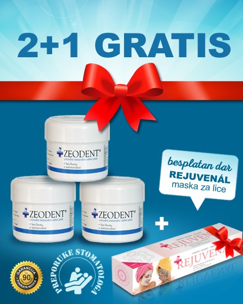 Cijena jednog pakiranja Zeodenta (95 g ili 140 ml) je 195 kn + 26 kn troškovi dostave, a ono je dostatno za 5-6 mjeseci svakodnevne upotrebe, osim ako imate većih problema s desnima, onda računajte na to da će zbog utrljavanja u zubno meso trajati kraće i zato smo za Vas i Vaše najmilije pripremili Akcijski paket koji sadrži tri kutije Zeodenta® (2 platite, i još još jednu kutiju dobivate besplatno ) i također besplatni, vrlo vrijedni POKLON zeolitnu masku za dubinsku obnovu kože lica Rejuvenal za 15 upotreba.