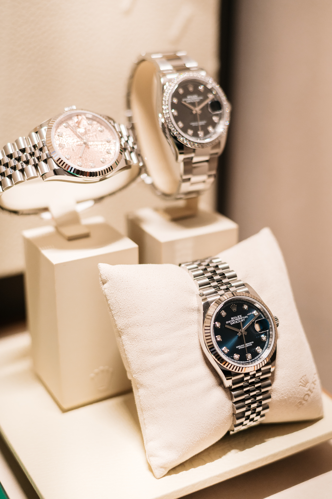 Prvi predstavljeni Oyster Perpetual Datejust 31, izrađen u žutoj Rolesor verziji (spoj čelika Oyster i 18-karatnog žutog zlata) spaja maslinasto zeleni brojčanik s efektom sjaja sunčeve svjetlosti i rimske brojke u 18-karatnom žutom zlatu - VI optočen s 11 dijamanata - na narukvici Jubilee. Drugi je u verziji Everose Rolesora (spoj čelika Oyster i 18-karatnog Everose zlata) koji nudi brojčanik u ružičastoj boji s efektom sjaja sunčeve svjetlosti s rimskim brojkama u 18-karatnom rozom zlatu na narukvici Oyster. Njihovo kućište Oyster dolazi s rebrastim prstenom u 18-karatnom zlatu i kalibrom 2236. Ovaj mehanizam nove generacije nudi superiorne performanse, zahvaljujući posebice njegovoj silikonskoj Syloxi nemirnici, razvijenoj i patentiranoj od strane Rolexa. Nudi rezervu snage od otprilike 55 sati.