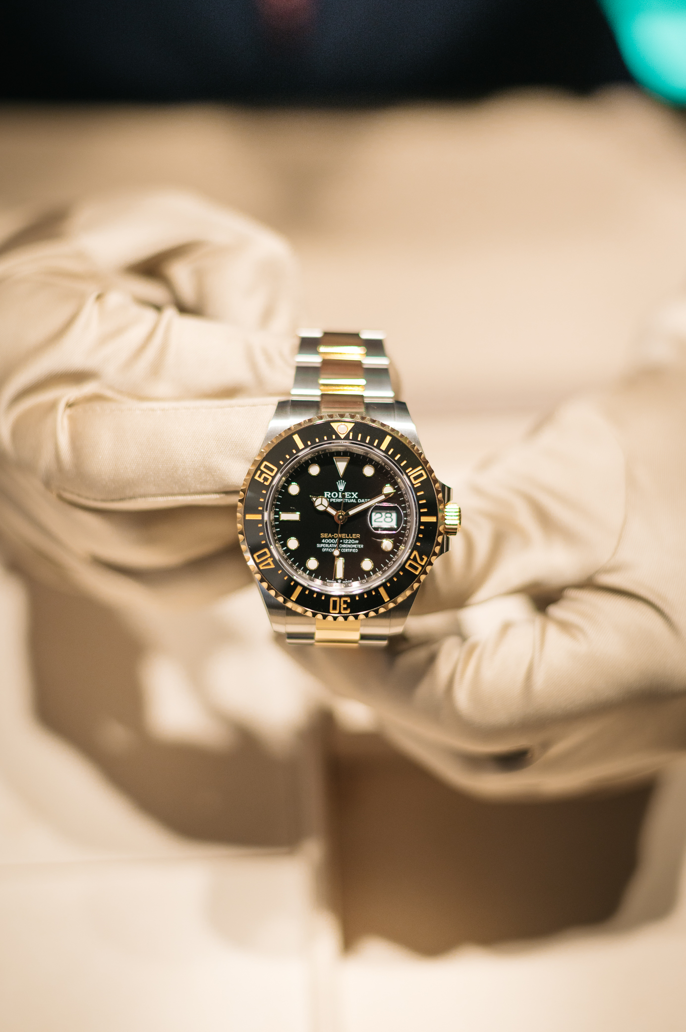 Verzija u žutom Rolesoru (spoj čelika Oyster i 18-karatnog žutog zlata) Oyster Perpetual Sea-Dweller modela po prvi put donosi 18-karatno žuto zlato Sea-Dweller kolekciji. Svijetle refleksije na bočnim stranama i nogicama kućišta ističu profil njegovog kućišta Oyster u čeliku Oyster. Natpis “Sea-Dweller” na brojčaniku u žutoj je boji, komplementirajući 18-karatno žuto zlato dvosmjernog rotirajućeg prstena. Njegov 60-minutni gradacijski umetak prstena Cerachrom dolazi u crnoj keramici. Oyster Perpetual Sea-Dweller opremljen je kalibrom nove generacije 3235. Ovaj mehanizam sadrži Chronergy escapement, razvijen i patentiran od strane Rolexa, te nudi rezervu snage od otprilike 70 sati.