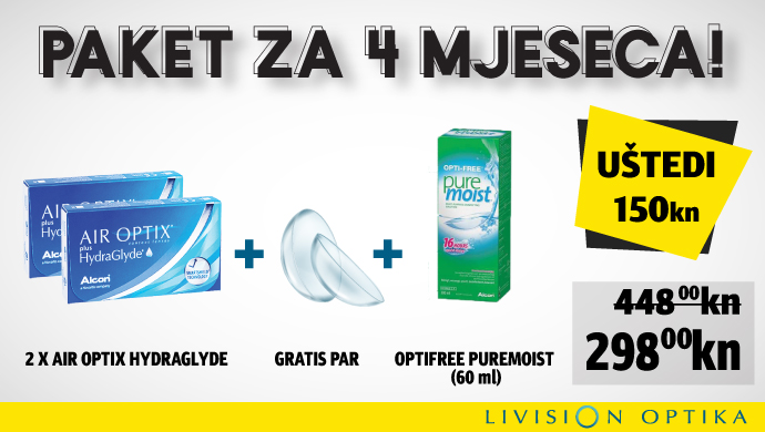 Paket AirOptix kontaknih leća za 4 mjeseca + otopina OPTI-FREE PURE MOIST = 298,00 kn!!!
