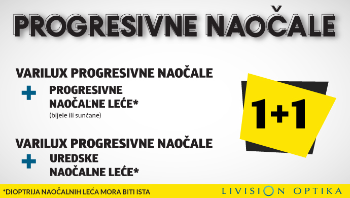 Uz kupnju jednog para progresivnih naočalnih leća drugi par progresivnih ili uredskih leća dobivate BESPLATNO!