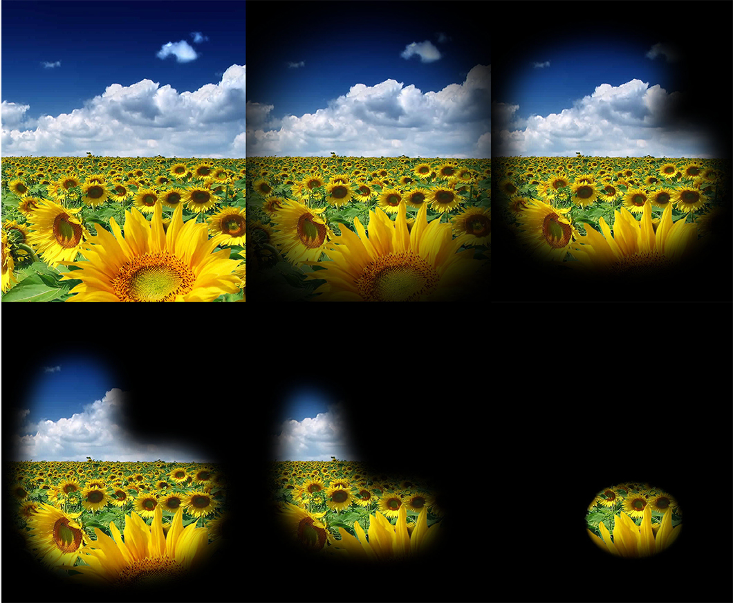 Slika prikazuje postepeni gubitak vida uzrokovan glaukomom.