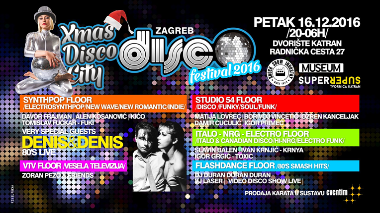 Velika nam je čast i zadovoljstvo pozvati vas na dugoočekivani Zagreb DISCO Festival 2016 koji će se ove godine održati pod nazivom "Xmas Disco City". Zagreb DISCO Festival je u samo godinu dana od svog premijernog izdanja pod nazivom "The Ultimate '70s & '80s Reunion" izrastao u najveći i najpopularniji regionalni disco festival koji je po svom programskom konceptu jedinstven u svijetu.