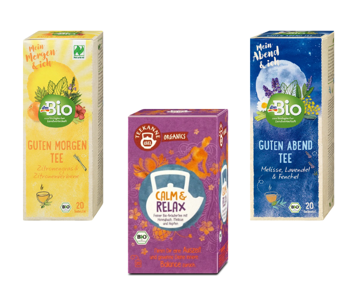 dmBio čaj za dobro jutro, Teekanne Organics čaj Calm & Relax, dmBio čaj za laku noć