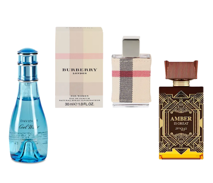 Davidoff Cool Water Woman edt, Burberry London For Women edp, Zimaya Amber Is Great edp
