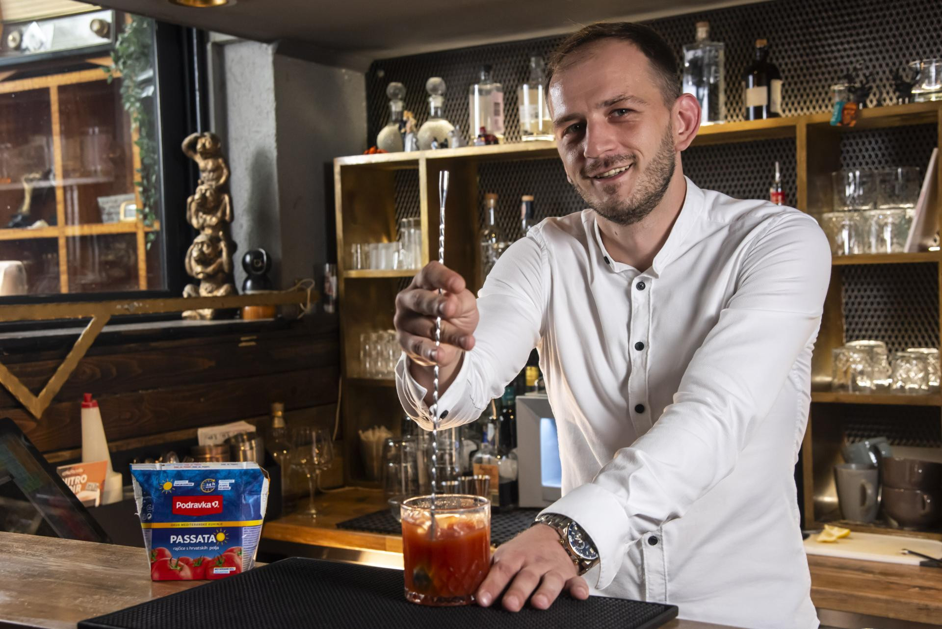 Kad spomenemo koktele s rajčicom, većini će prvo pasti na pamet Bloody Mary, klasična kombinacija votke, soka od rajčice i začina koja je navodno najbolji lijek za mamurluk. Ali što se događa kad umjesto običnog soka posegnemo za passatom? U taj eksperiment spremno se upustio Antonio Glavica (34), koktel majstor koji je u miksologiji već četiri i pol godine, a znanje o koktelima je brusio kod poznatog chefa Marina Medaka u Rougemarinu.