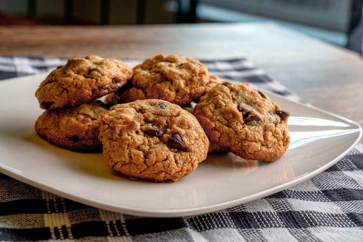 Banane zgnječiti i sjediniti s ostalim sastojcima. Dobivenu smjesu podijeliti na jednake dijelove (oko 12 komada) pa staviti na papir za pečenje. Peći u unaprijed ugrijanoj pećnici na 180 stupnjeva i pustiti da se ohlade kako biste mogli uživati u punini okusa.