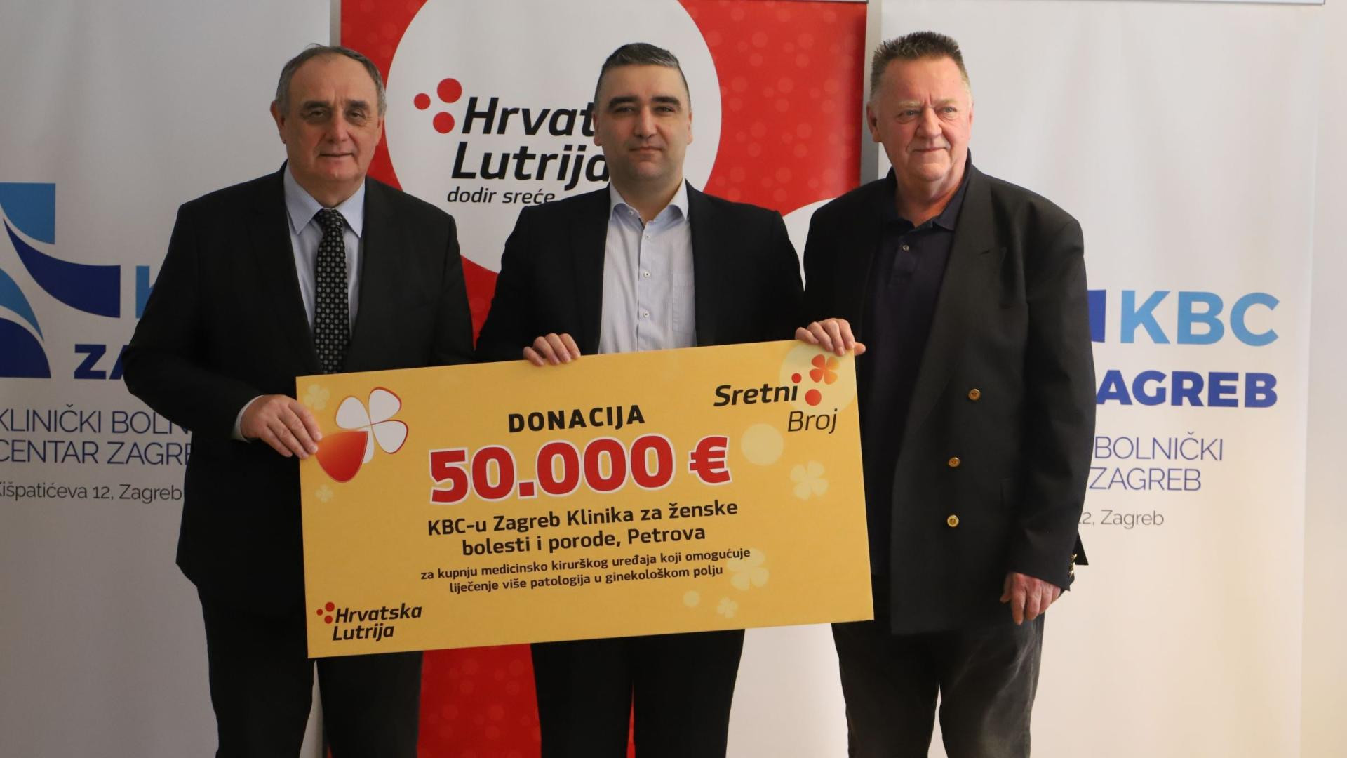 Igrači Hrvatske Lutrije su odigravanjem igre humanitarnog karaktera Sretni Broj sudjelovali u prikupljanju sredstava za donaciju Klinici za ženske bolesti i porode KBC-a Zagreb, za nabavu medicinsko-kirurškog uređaja koji omogućuje liječenje više patologija u ginekološkom polju, čime će se značajno unaprijediti kvaliteta i opseg pružene zdravstvene skrbi. Vrijednu donaciju v.d. zamjeniku ravnatelja Kliničkog bolničkog centra Zagreb prim.dr. Milivoju Novaku, uručio je predsjednik Uprave Hrvatske Lutrije Ignacije Čutura u prisutnosti pomoćnice ravnatelja za sestrinstvo i glavne sestre KBC-a Zagreb, magistre sestrinstva Ane Ljubas, predstojnika Klinike za ženske bolesti i porode, prof. dr. sc. Slavka Oreškovića i glavne sestre Klinike za ženske bolesti i porode, magistre sestrinstva Đurđice Zlodi.