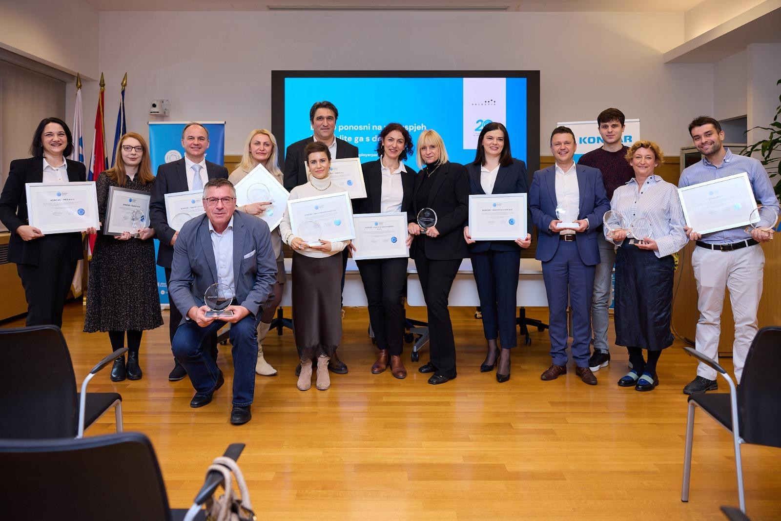 SELECTIO Grupa, vodeća grupacija za savjetovanje u ljudskim potencijalima, dodijelila je KONČARU certifikat Employer Partner kojim se tvrtka svrstava u prestižan krug poslodavaca prepoznatih po najvišim standardima upravljanja ljudskim potencijalima. Uz predstavnike odjela ljudskih potencijala KONČAREVIH društava i stručnjake iz SELECTIO Grupe, na svečanoj dodjeli sudjelovali su predsjednik Uprave KONČARA Gordan Kolak, direktor Sektora ljudskih potencijala KONČARA Damir Sertić, direktor SELECTIO Grupe Aleksandar Zemunić i voditeljica HR Consultinga u SELECTIO Grupi Lara Šubić Šuša. Navedenim certifikatom nagrađena su gotovo sva društva Grupe KONČAR, što potvrđuje sveobuhvatan i sinergijski pristup u provođenju i daljnjem razvoju najboljih praksi.