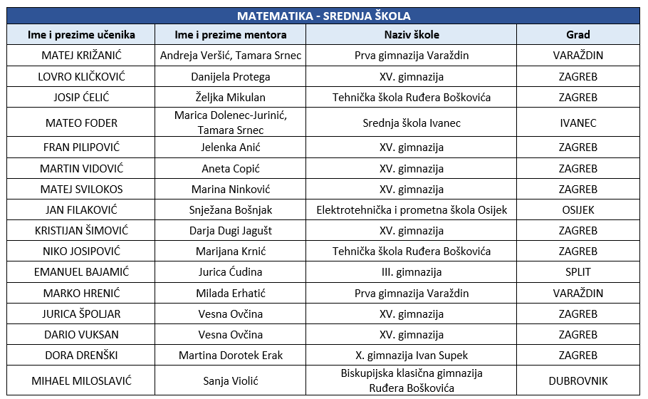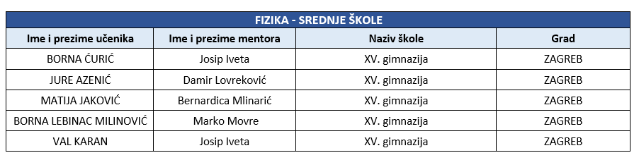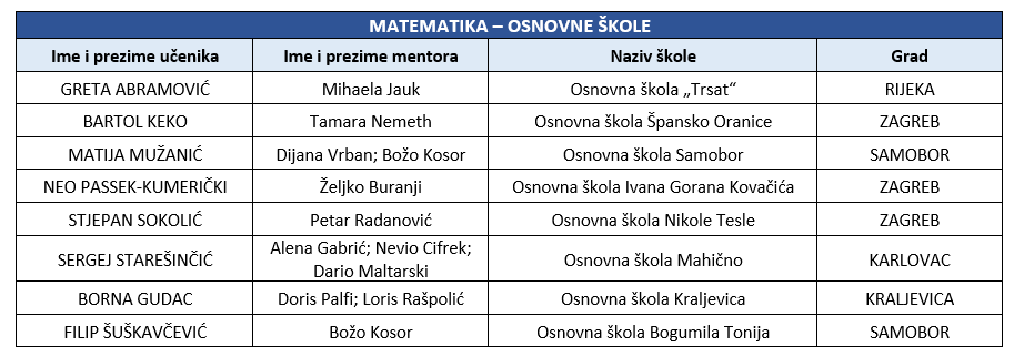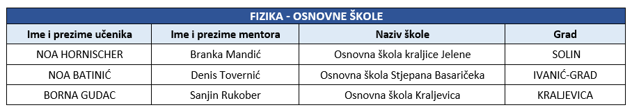 Nagradu za školsku godinu 2024./2025. u iznosu od 500 eura dobili su učenici osnovnih i srednjih škola koji su postigli najbolje rezultate (prva nagrada) na državnim natjecanjima znanja iz predmeta matematike i fizike, kao i na javnim izlaganjima eksperimentalnih radova iz fizike te osvajači prvih triju mjesta na natjecanjima učenika srednjih strukovnih škola u disciplinama Električne instalacije, Izrada programskih rješenja, Administracija IT sustava, Robotika i Mehatronika.