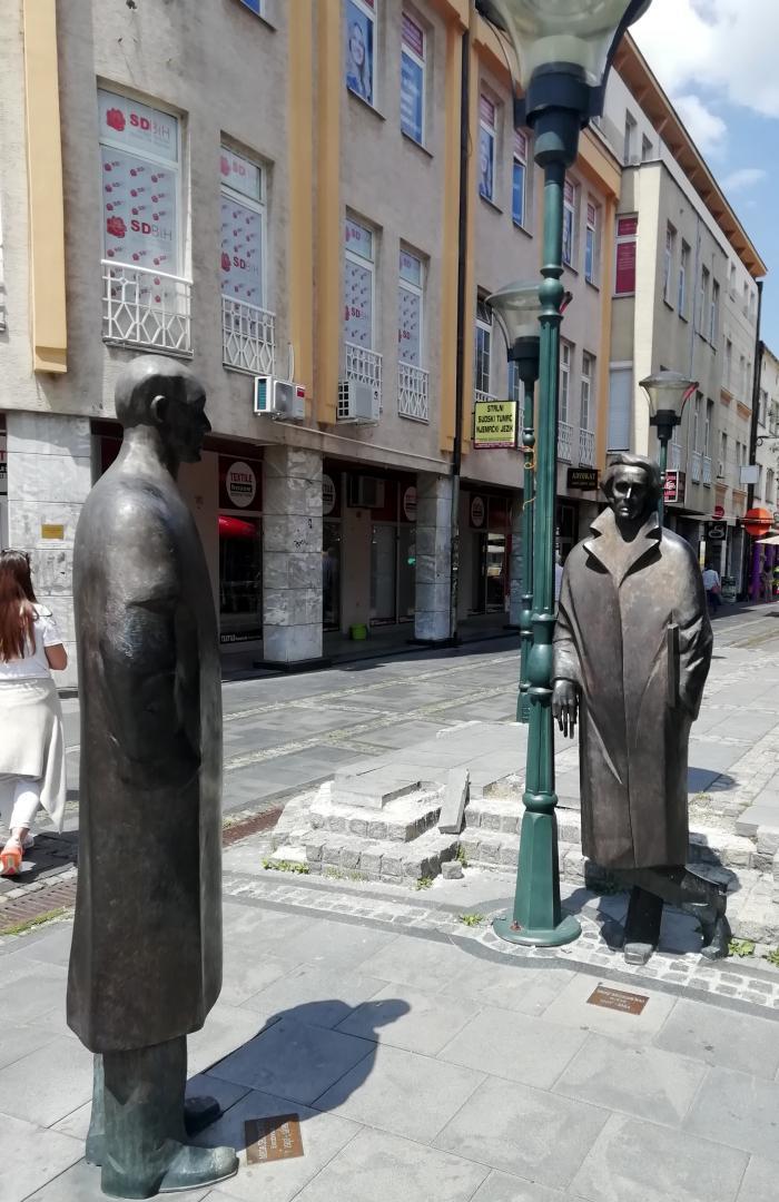 Meša Selimović i Ismet Mujezinović, koji su prijateljevali za života, ovjekovkečeni su skulpturama na Korzu, koje su postale i popularno sastajalište - kod Meše i Ismeta. Impozantniji spomenik u Gradskom parku dobio je bosanski kralj Tvrtko I. Kotromanić, za čijeg je života (1338.-1391.) ova država doživjela najveći prosperitet.
