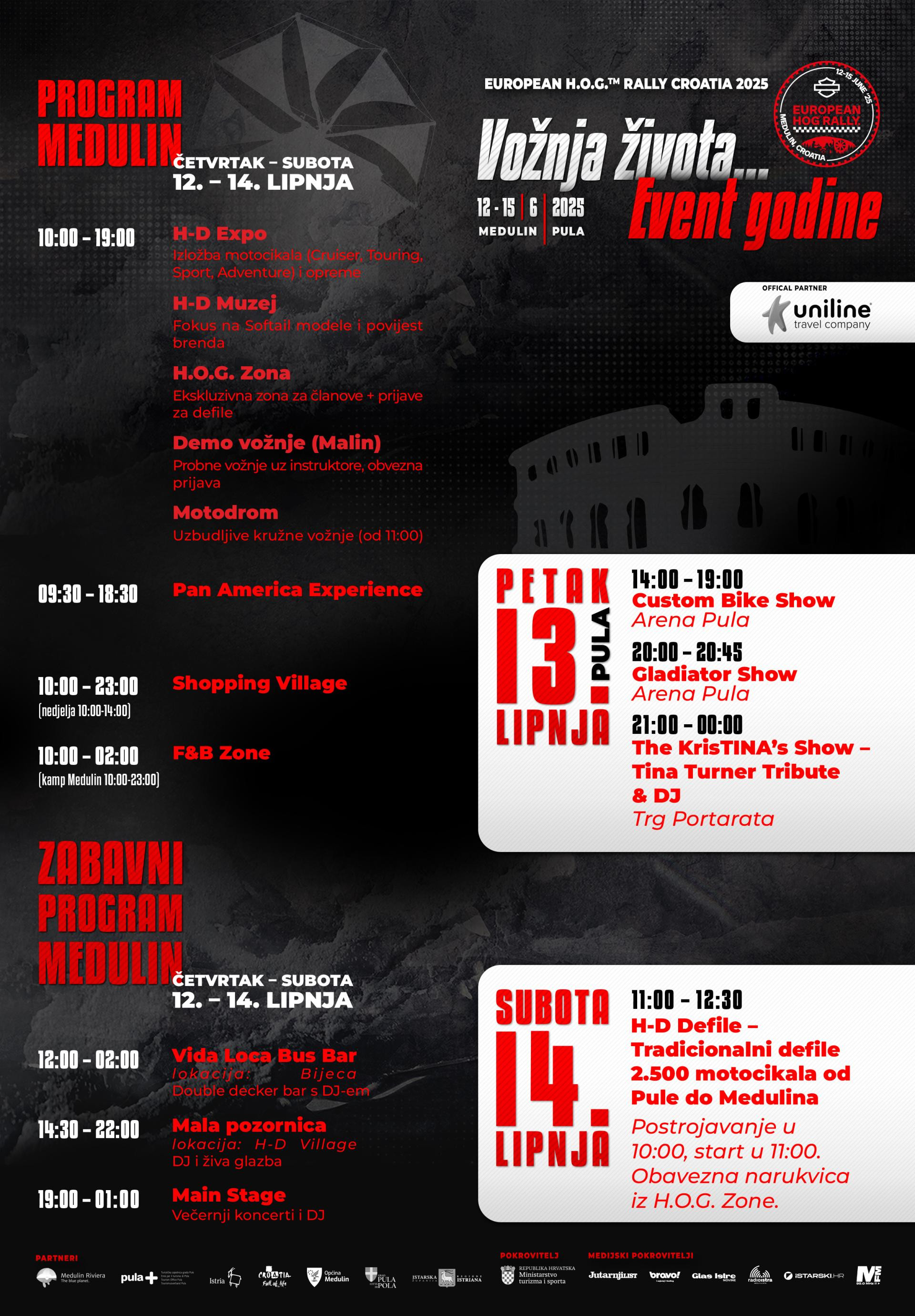 Da dolazak ovog globalnog događaja u Hrvatsku nije rezultat slučajnosti, već strateškog promišljanja, dugogodišnje ekspertize i međunarodne reputacije, potvrđuje i činjenica da je Harley-Davidson za partnera odabrao upravo Uniline, vodeći DMC za jugoistočnu Europu te dio Uniline Grupe. Harley-Davidson i Uniline, u partnerstvu s Općinom Medulin, Gradom Pulom i Istarskom županijom, uz podršku turističkih zajednica Općine Medulin, grada Pule, Istarske županije i Hrvatske turističke zajednice te pod pokroviteljstvom Ministarstva turizma i sporta, okupili su snage kako bi organizirali događaj koji nadilazi samu motociklističku strast. Događaj donosi snažan gospodarski poticaj i dodatno učvršćuje poziciju Hrvatske na karti najatraktivnijih destinacija za velika međunarodna događanja.