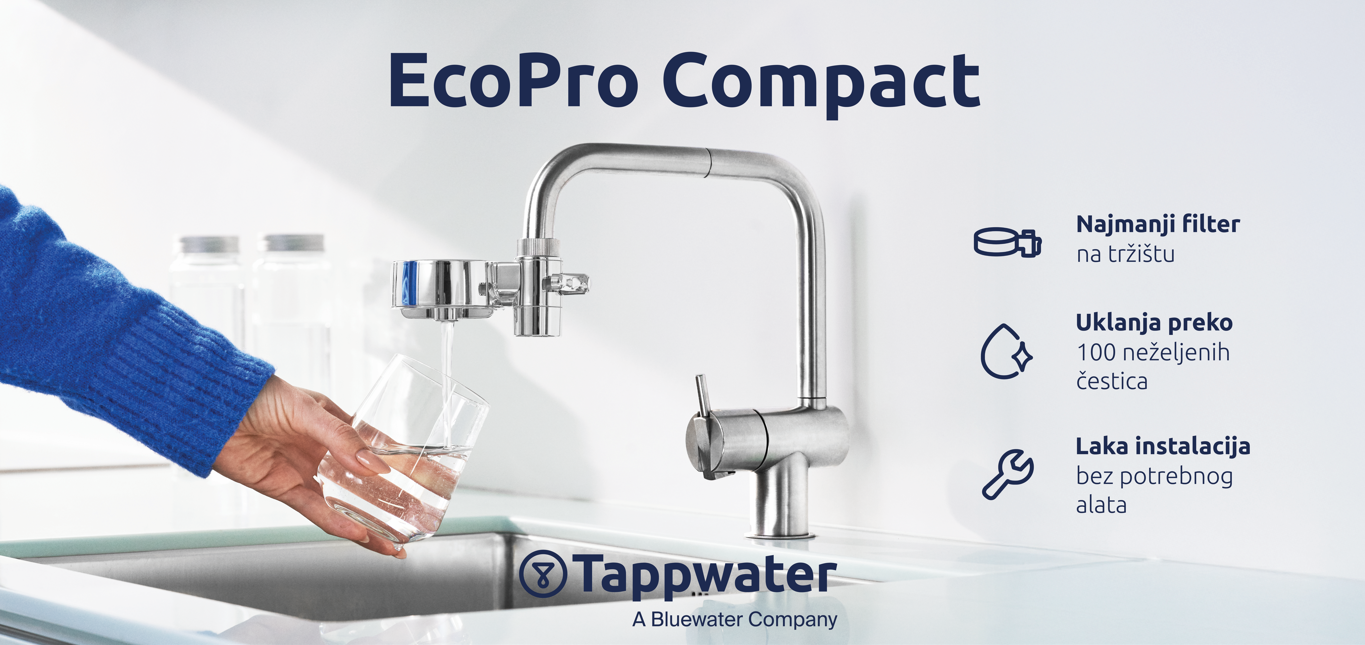 Ugradnjom filtera za slavine poput EcoPro Compact, testiranih od strane vodećih neovisnih laboratorija kako bi se zadovoljili najviši standardi kvalitete i sigurnosti, korisnici dobivaju pristup čistoj pitkoj vodi bez oslanjanja na flaširanu vodu, što rezultira značajnim uštedama u kućanstvu. Dizajniran za jednostavnu ugradnju, ovaj proizvod nije samo učinkovit, već i ekološki osviješten. U njegovom proizvodnom procesu koristi se 98% manje plastike u usporedbi s konvencionalnim filterima, štiteći i vaše zdravlje i okoliš. Za Tappwater, inovacija je ključni pokretač promjena, pomažući u promjeni svakodnevnih navika potrošača kako bi se zaštitile i sadašnje i buduće generacije.