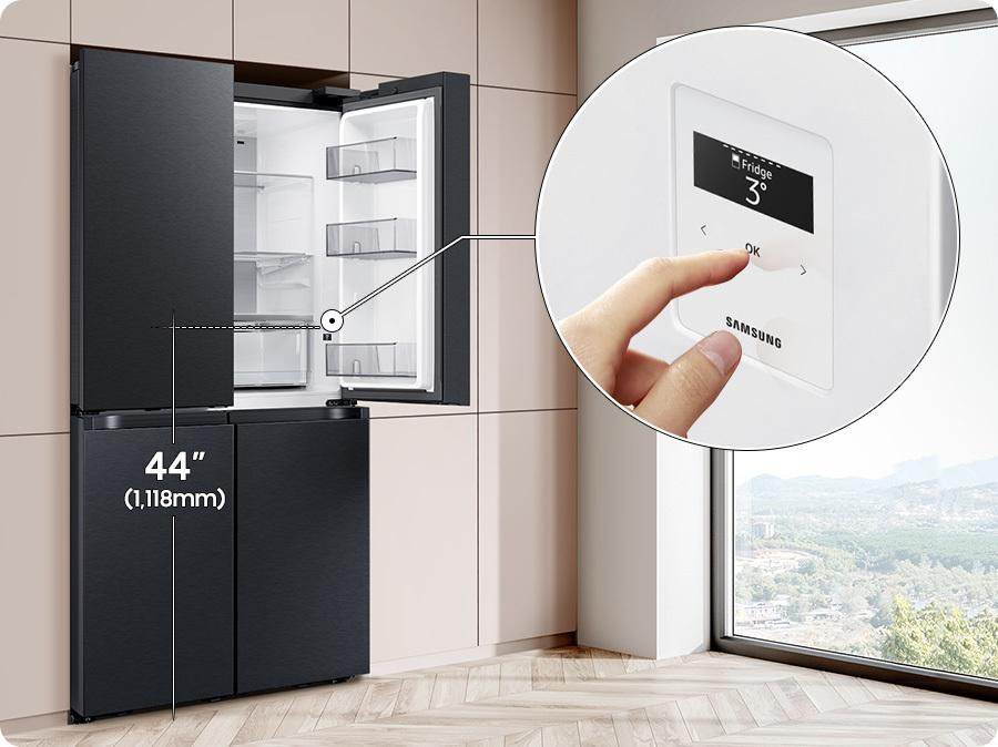 Samsung hladnjak s donjim zamrzivačem idealno je rješenje za organizaciju i pohranu velikog broja namirnica. Ekstra široki hladnjak sa zamrzivačem ističe se ugrađenim WiFi značajkama i poboljšanom uštedom energije uz SmartThings Energy. Pametni Samsung hladnjak prvi je iz ove linije koji je prema energetskim standardima EU dobio energetsku ocjenu „A“, čime je etiketiran kao efikasan i dugotrajan hladnjak koji podiže kvalitetu svakodnevnog života. Poznato je koliko ljetne temperature mogu biti opasne za hranu i piće, stoga je pravilno skladištenje od izuzetne važnosti. Zahvaljujući sveobuhvatnom sustavu hlađenja, ravnomjerno raspoređuje hladan zrak kroz svaki odjeljak. Temperatura se kontinuirano prati, a hladan zrak cirkulira kroz strateški postavljene otvore, čime se osigurava da hrana ostane na optimalnoj temperaturi i dulje zadrži svoju svježinu.