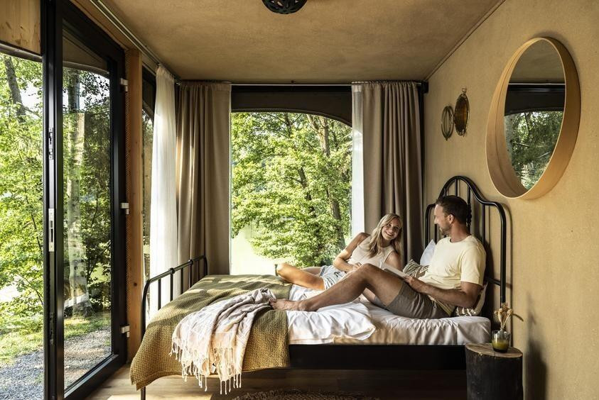 Od mirnog okruženja za opuštanje do savršenog mjesta za razne aktivnosti na otvorenom - Falkensteiner Premium Camping Lake Blagus na istoimenom jezeru Blaguš na sjeveru Slovenije pravi je dragulj za sve koji traže ugodan odmor daleko od zamorne vreve turističkih središta. Kamp ima 49 parcela za kamp prikolice s vrhunskom infrastrukturom i 20 klimatiziranih mobilnih kućica. Četiri kućice su velike, obiteljske, koje nude vrhunsku udobnost s privatnim kupaonicama, no posebnost ovog kampa upravo je u 16 ostakljenih kućica na jezeru, skladno smještenih u šumi, gdje gosti doslovno imaju osjećaj kao da spavaju pod vedrim nebom, samo uz sav komfor kao u klasičnoj hotelskoj sobi.