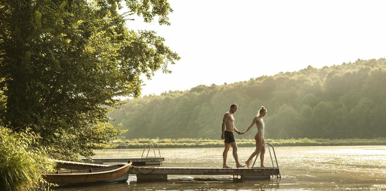 Probuditi se ujutro uz predivan pogled na jezero i zelenilo doista je poseban doživljaj. Samo nekoliko koraka dalje nalazi se sve što gostima treba za ugodan boravak: toaleti, moderne kabine za tuširanje s pogledom na šumu (izvana vas, naravno, nitko ne vidi, ali zato vi uživate u jedinstvenom pregledu dok se tuširate!), perilice rublja, kao i još jedna posebnost - šumska sauna. Dizajnirajući ovaj premium kamp u Falkensteineru su se posebno usredotočili na očuvanje prirodnog okoliša pa su koristili isključivo obnovljive građevinske materijale - drvo, slamu i glinu - što lijepo zaokružuje cijelu ovu ekološku priču i osigurava savršen balans topline i vlage. Boravak u kampu stoga je maksimalno ugodan u svim vremenskim uvjetima.
