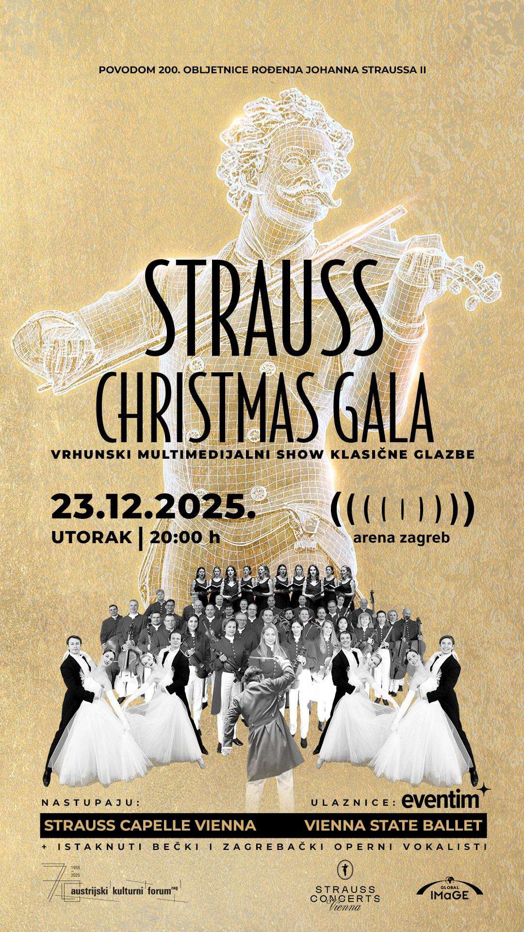 Multimedijalni spektakl koji spaja klasičnu glazbu, ples, vizualnu čaroliju i najmoderniju tehnologiju po prvi put dolazi u Hrvatsku. Krajem 2025. godine, Arena Zagreb pretvorit će se u raskošnu pozornicu do sada neviđenog koncerta klasične glazbe - Strauss Christmas Gala, povodom 200. obljetnice rođenja Johanna Straussa II. U čast čovjeka koji je zadužio svijet jedinstvenim valcerima, publika će 23. prosinca 2025. svjedočiti stvaranju nove tradicije obiteljskog slavljenja čarolije Božića. Priču o glazbenom geniju koji je oblikovao plesni ritam Europe izvodi izvorni bečki orkestar Strauss Capelle Vienna pod umjetničkim vodstvom Francisca Supina. Ulaznice su upravo puštene u prodaju, a mi smo zavirili iza kulisa i otkrili detalje događanja za koji će se vjerujemo, tražiti mjesto više.