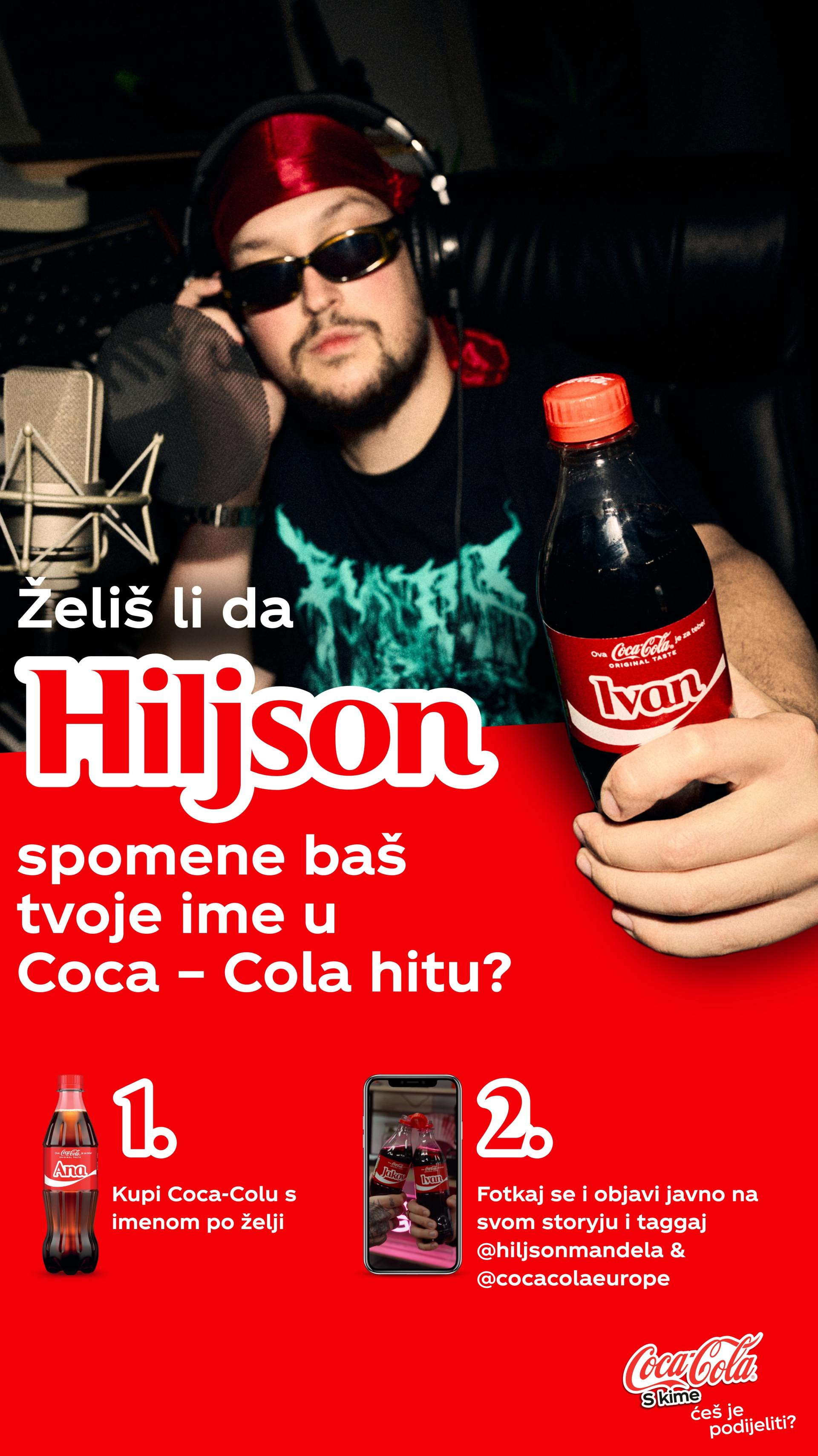 U suradnji s jednim od najkarizmatičnijih izvođača domaće scene, Hiljsonom Mandelom, Coca-Cola je ovog ljeta, u personalizaciji, otišla korak dalje. Kultna Share a Coke kampanja, poznata po bočicama i limenkama s najdražim imenima, dobila je svoj glazbeni twist: Hilje je remiksirao legendarni Share a Coke jingle i dodao imena dostupna u ovogodišnjoj kampanji.