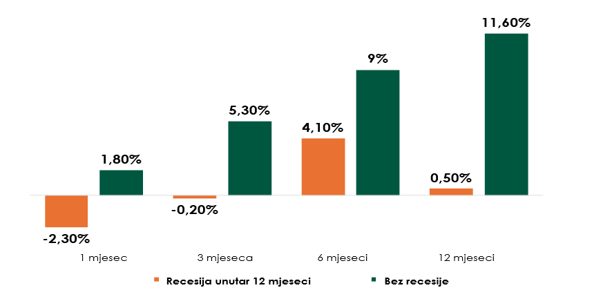 Grafikon 5 Prosječni prinosi S&P 500 indeksa nakon korekcije od 10% od 1980. godine (Interna analiza Eurizina)