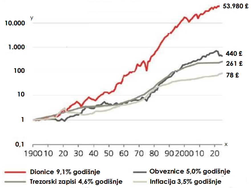 - Gornja analiza provedena je na američkom tržištu jer za njega postoje podatci unazad više od 100 godina, no i druga tržišta dionica dugoročno su ostvarila vrlo atraktivne prinose. Britansko tržište dionica također ima dugu povijest i snažne povrate u usporedbi s drugim klasama imovine.