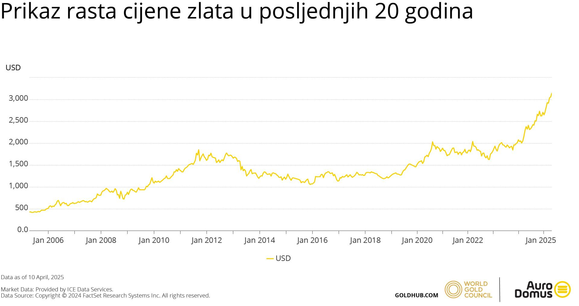 Investicijsko zlato sve je poželjniji oblik ulaganja, odnosno štednje. Razlog toga je veća svijet građana o prednostima koje ovaj oblik ulaganja nudi, ali i ubrzani rast vrijednosti zlata. Zlato je sredinom ožujka doseglo povijesnu granicu od 3.000 dolara za uncu, što predstavlja rast od oko 38 posto u odnosu na isti mjesec prošle godine.