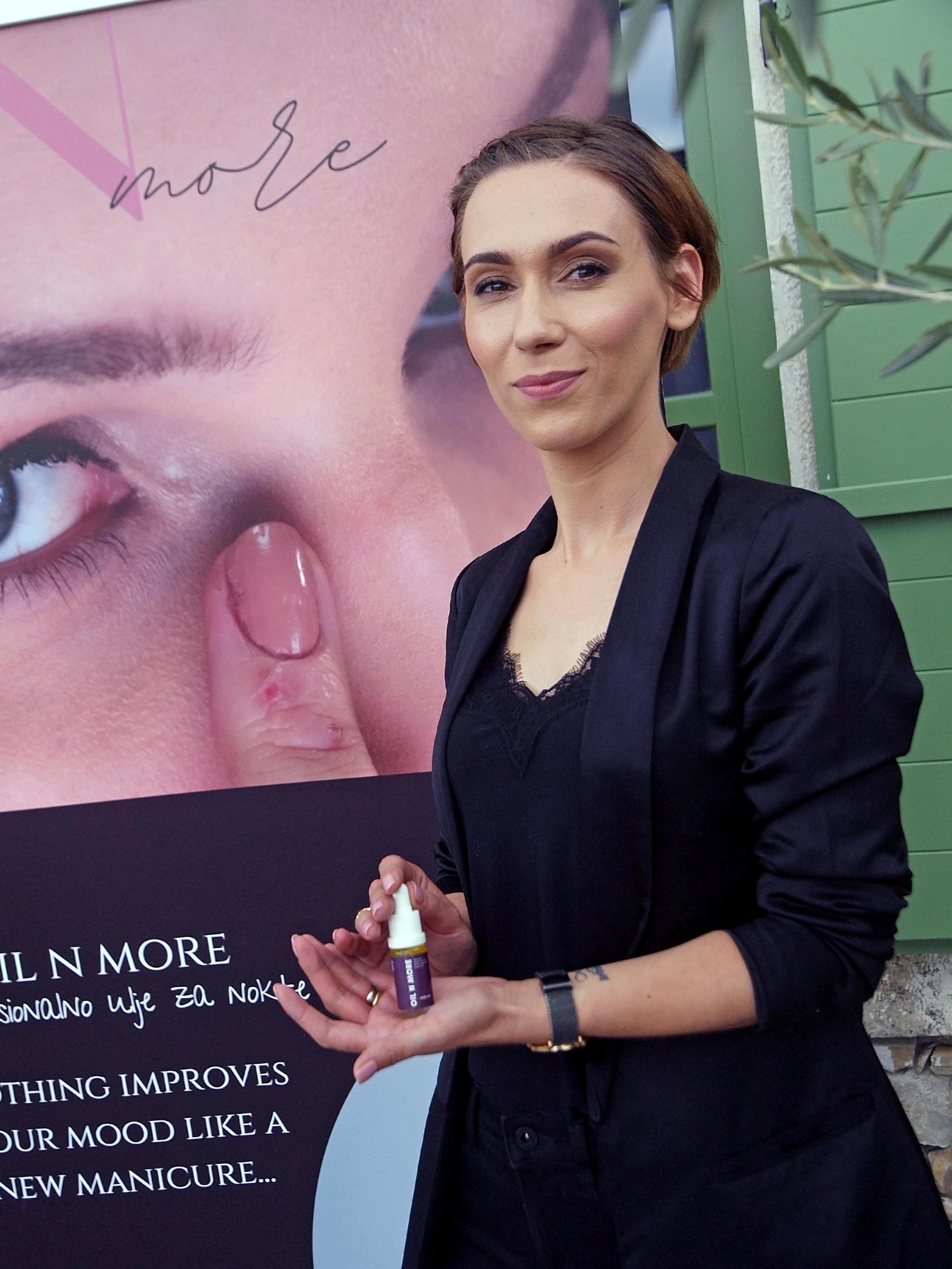 “Oil n More zbog kanabidiola (CBD) obnavlja nokte, dok smola Smirne djeluje protuupalno prilikom tretiranja gljivica. Namijenjeno je i za manikuru i pedikuru i najbolje ga je isprobati” - rekla je Andrea Gudac, voditeljica projekta dodajući kako je, zajedno s timom, dugo smišljala formulaciju koja neće biti suviše komplicirana realizirati, a koja će raditi točno ono što mi želimo od nje. Tako je CBD ulju dodana Smirna u optimalnom omjeru i stvorena formulacija velike moći.