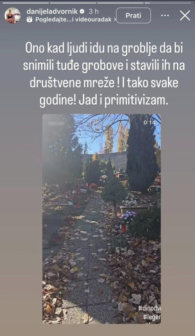 - Ono kad ljudi idu na groblje da bi snimili tuđe grobove i stavili ih na društvene mreže! I tako svake godine! Jad i primitivizam!, napisala je Dvornik.
