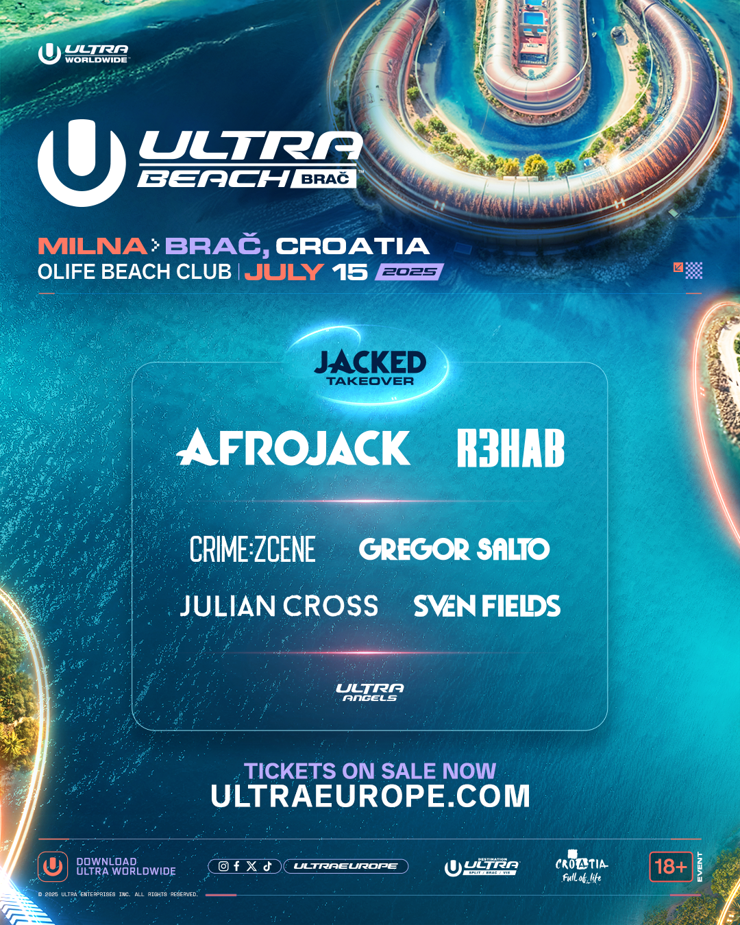 Već godinama ULTRA Beach party oblikuje najljepše ljetne uspomene, a ove godine jedna od najpoznatijih festivalskih pozornica Europe seli se na novu, ekskluzivnu lokaciju - Olife Beach u Milni na Braču. U ovom prirodnom amfiteatru za glazbeni vrhunac 15. srpnja bit će zaduženi Afrojack, jedan od najtraženijih izvođača današnjice, a pridružit će mu se i R3hab. Kao najavu dana ispunjenog euforijom i ritmovima koji će se pamtiti, zagrijavanje ovog kultnog beach partyja predvodit će izvođači s Afrojackovog labela Jacked Takeover - Crime Zcene, Gregor Salto, Julian Cross te Sven Fields. Cijena regularnih ulaznica za osvježeno izdanje ULTRA Beach partyja je 39€ dok će svi oni koji žele VIP iskustvo ovog partyja morati izdvojiti 89€.