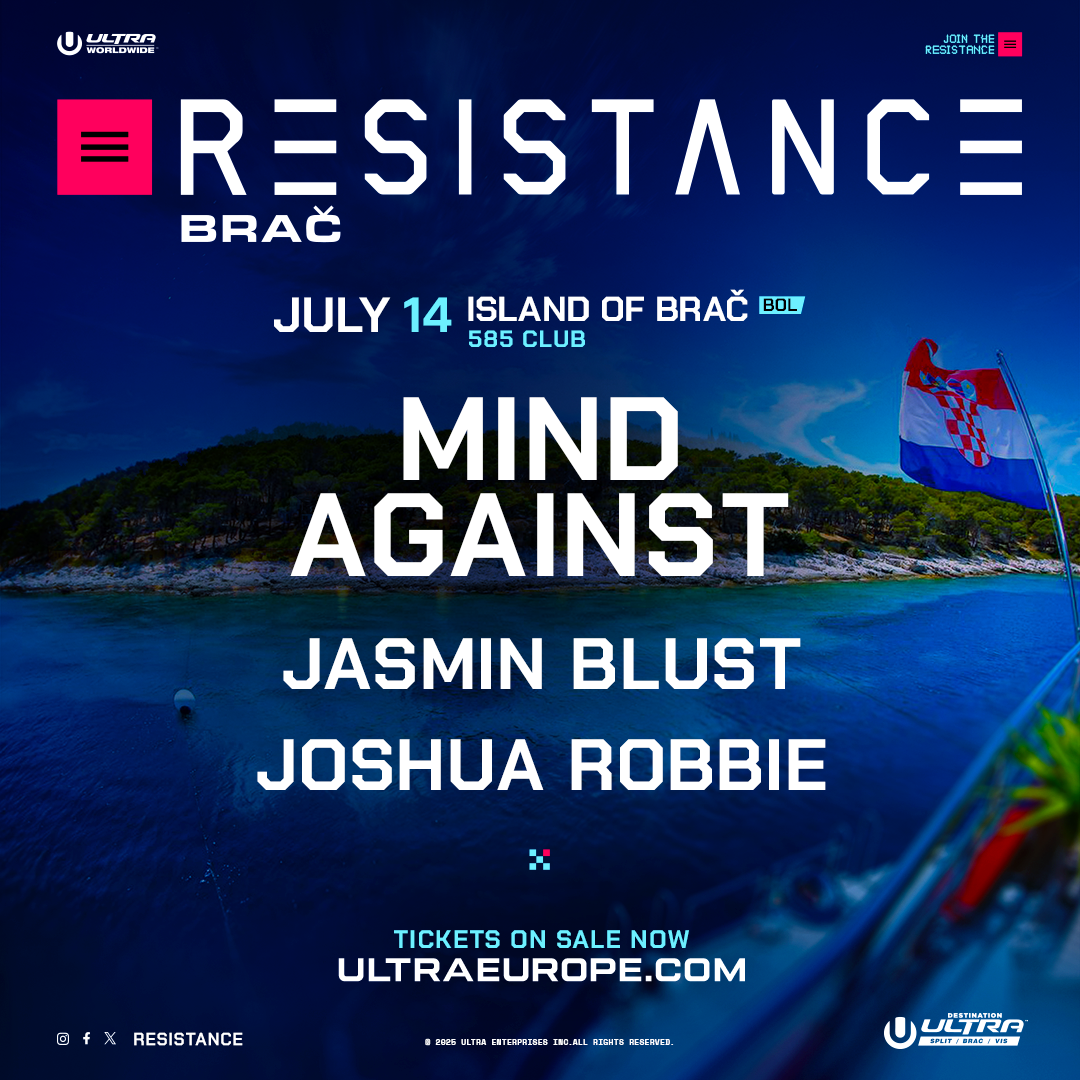 Nakon tri dana u Splitu, Destination ULTRA otočka avantura 14. srpnja započinje upravo tamo gdje Mediteran diše punim plućima - u bolskom 585 Clubu, smještenom nadomak kultnog Zlatnog rata. Premijerno izdanje RESISTANCE programa na Braču donijet će neočekivan spoj prirode i underground zvuka. Vrhunac večeri očekuje se uz Mind Against, talijanski duo s berlinskom adresom koji svoj glazbeni arhetip crpe iz zajedničkih korijena IDM-a, housea i techna i time stvaraju sofisticiranu zvučnu priču idealnu za ovaj klupski ambijent. Glazbeno zagrijavanje predvodit će Jasmin Blust i Joshua Robbie i uvesti publiku u noć koja najavljuje novo poglavlje Destination ULTRA iskustva. Ulaznice su u prodaji, dostupne po cijeni od 25€ za GA ulaznice te 49€ za VIP ulaznice.