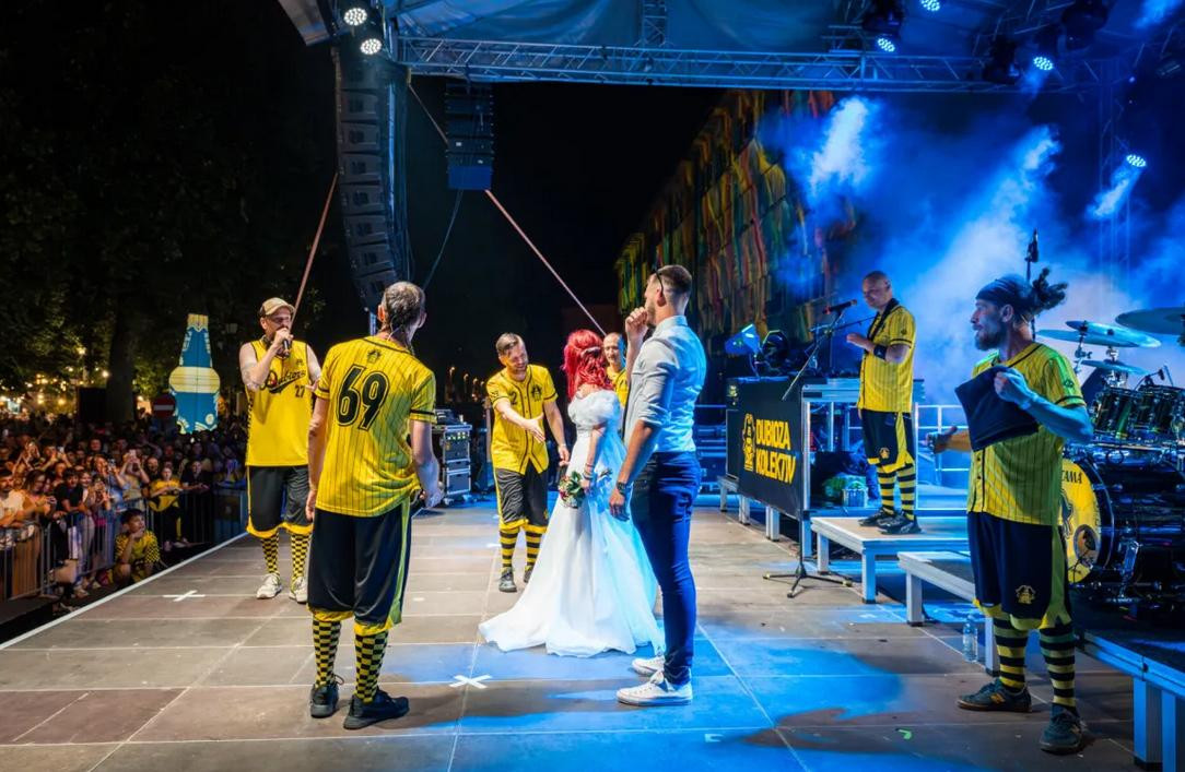 Mnogi mladenci svoj dan vjenčanja planiraju mjesecima unaprijed, a ono čemu se nadaju jest da će im taj dan biti najljepši u životu. Petri i Valentinu Fusić svakako će njihov dan vjenčanja ostati u sjećanju, ali ne samo zbog slavlja njihove ljubavi i početka bračnog putovanja. Već i zbog načina na koji su proslavili svoju ljubav. Naime, ovaj mladi bračni par, umjesto klasičnog svadbenog slavlja, izabrao je koncert Dubioze kolektiv koji se održavao u sklopu Terezijane, najveće bjelovarske manifestacije, piše MojPortal.hr.
