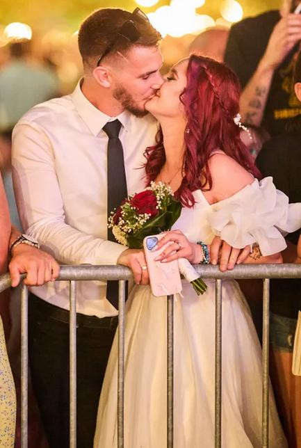 - Malo smo kasnili jer nismo mogli naći parking u gradu, no stigli smo do prvih redova ispred bine i čekali sam početak koncerta. Teško je bilo ne shvatiti da sam mladenka jer sam bila u vjenčanici, našalila se Petra i dodala nam kako su ih članovi benda pri samom kraju koncerta pozvali na binu.