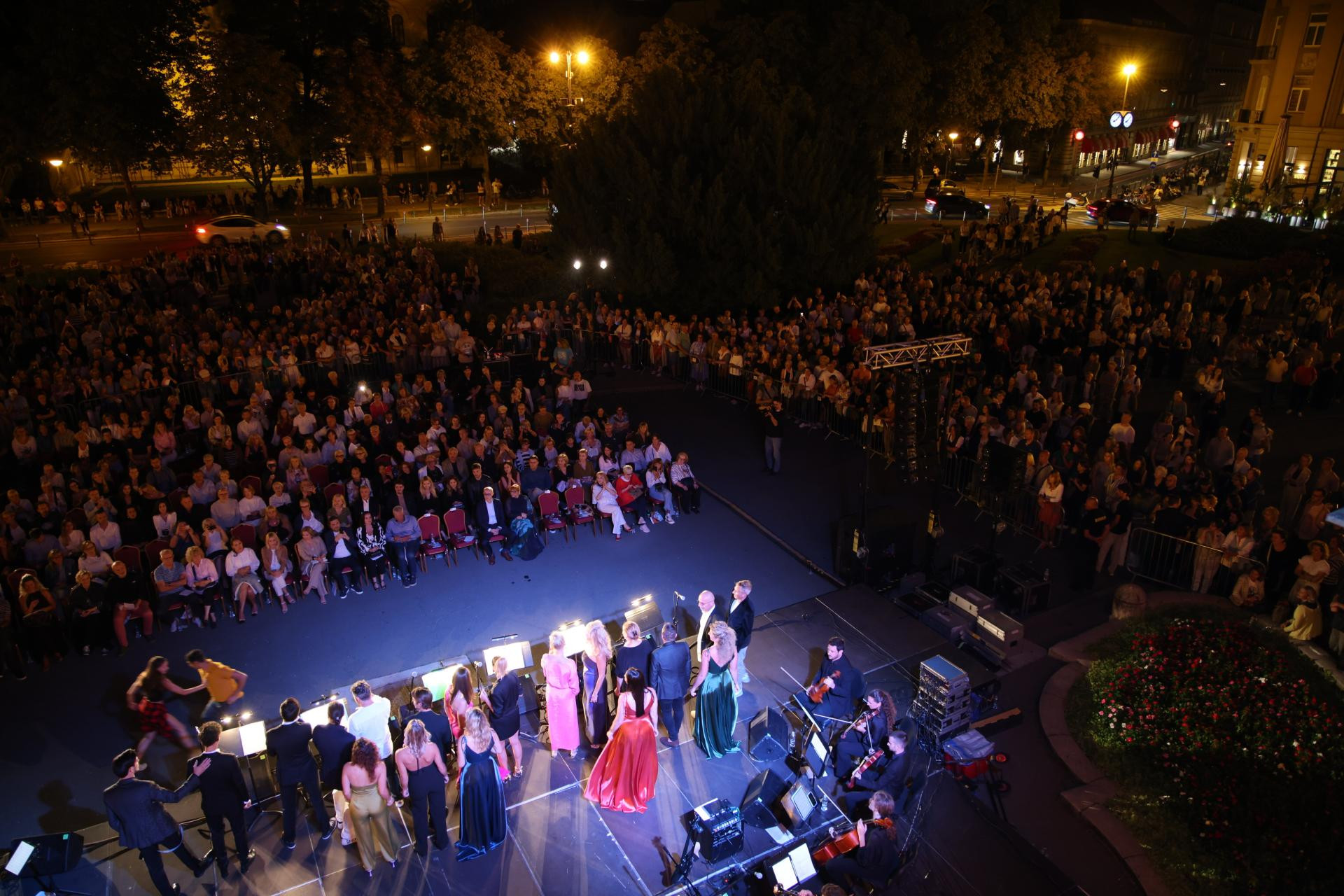 Poznata pjesma Nene Belana "Sunčan dan" praćena i izvedbom baletnih umjetnika Mirune Miciu i Taiguara Goularta, bila je večeras odličan uvod za ovaj glazbeno-scenski spektakl koji se već pet godinu za redom održava u organizaciji HNK Zagreb i Jutarnjeg lista, te uz podršku Turističke zajednice grada Zagreba, a prvi puta u rujnu.