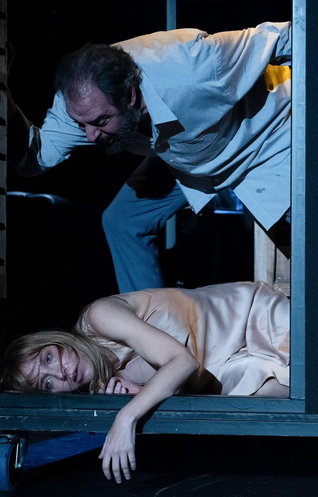 Igrati negativca uvijek je zapravo najteži glumački zadatak, pogotovo u teatru. Ovdje Enes Vejzović postiže ravnotežu između lika i publike. Naime, ne može se graditi posve negativan lik, umjetnički je nemoguće i za publiku neprihvatljivo. Svaki takav lik mora imati dozu slabosti koja ga ipak čini čovjekom. Vejzović gradi ulogu zlostavljača koji je i sam bio zlostavljan u djetinjstvu. Premda slabić, nije lišen unutarnje borbe i katkad je svjestan vlastite izopačenosti. Međutim, to su tek prosjaji, brzo potone u vlastiti obrazac bijesa i mračne opsesije. Ulogom dokazuje glumačku zrelost, koja se eto temelji na više desetljeća predanog rada u teatru. Odigrao je u matičnom kazalištu Gavella više od četrdeset uloga, među kojima mnoge glavne i jedan je od nositelja repertoara.