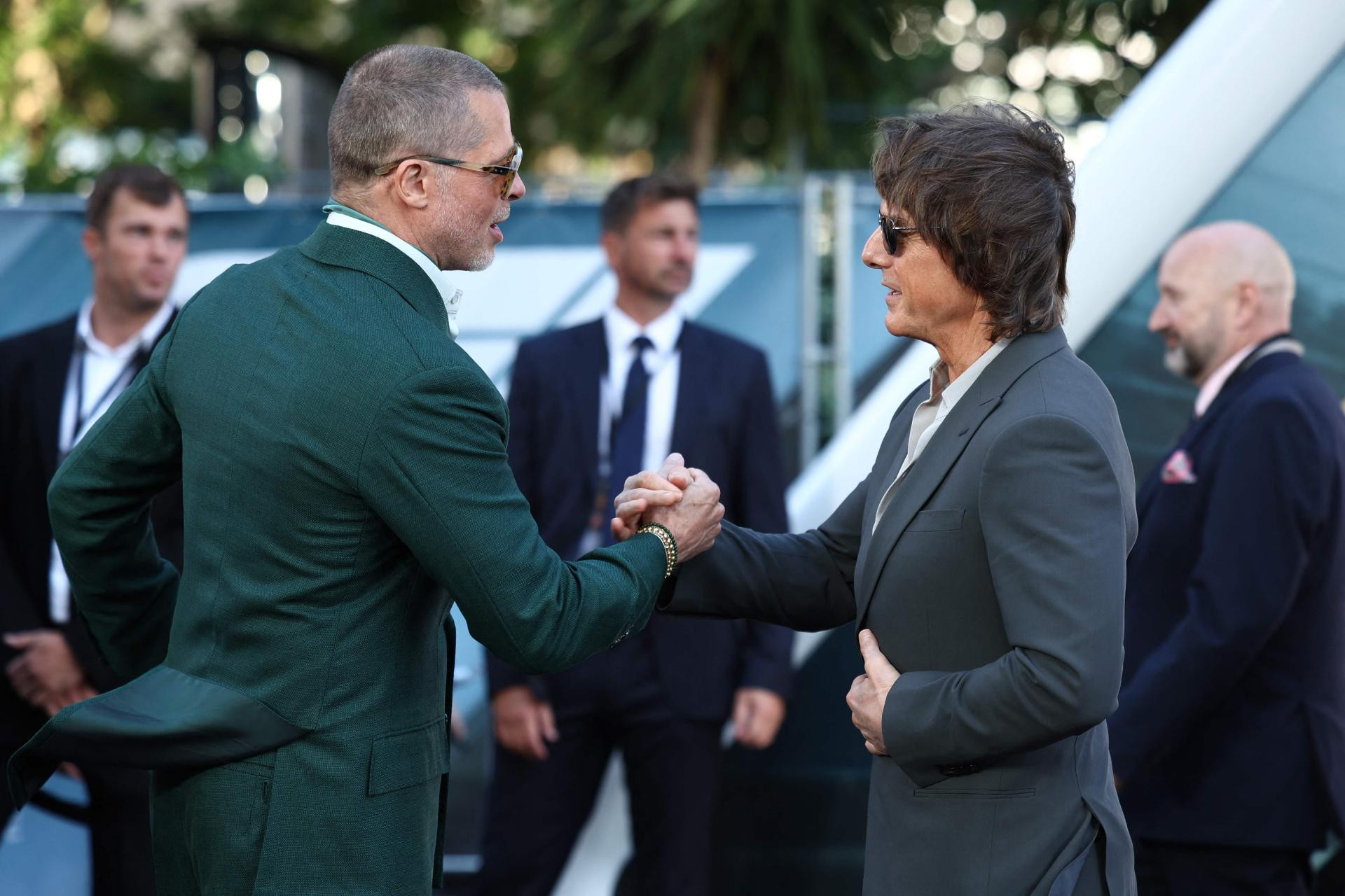 Pitt je nosio elegantno zeleno odijelo s mint-zelenim šalom, a izgled je upotpunio smeđim cipelama i elegantnim sunčanim naočalama, dok je Cruise nosio sivo odijelo i crne cipele. Cruise je na događaj stigao sam, dok je Pittova djevojka, dizajnerica nakita Ines de Ramon, došla u pratnji glumca, piše Page Six.