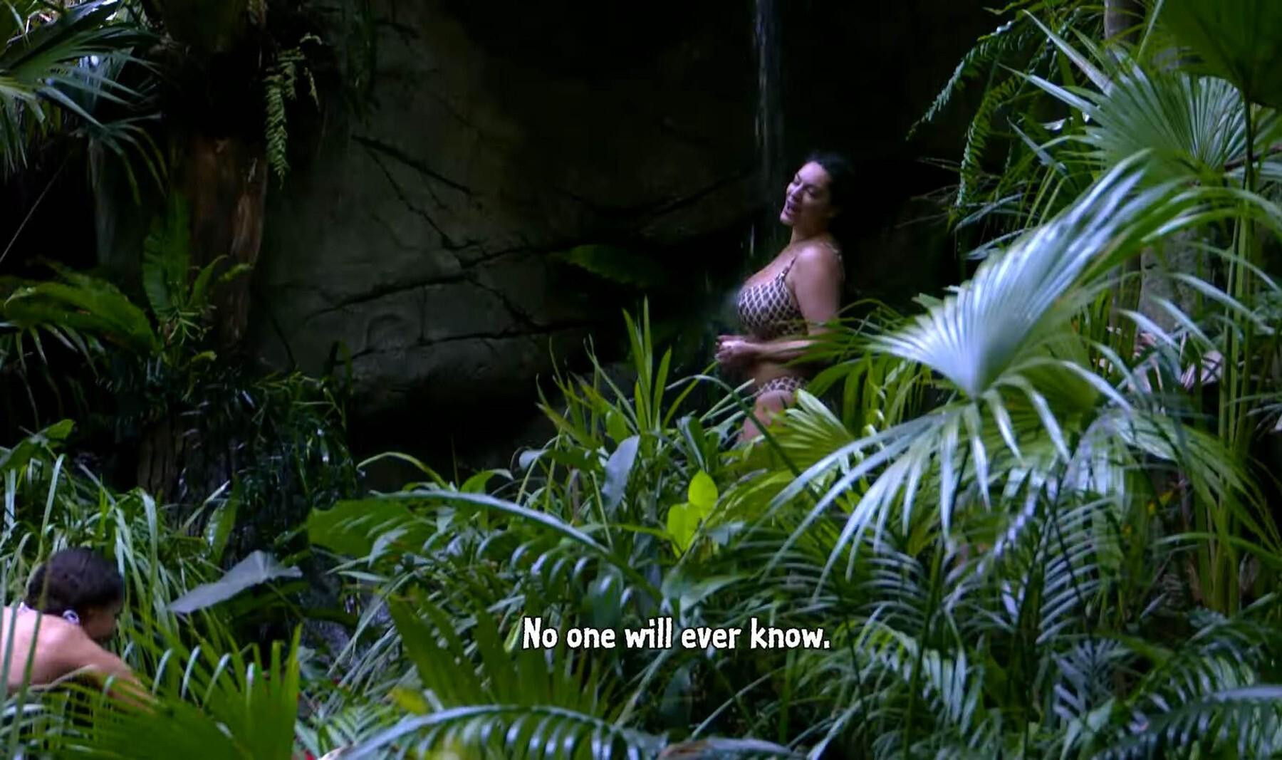 Osim s Ruby Wax, Brook se otuširala i s engleskom glumicom Shonom McGarty i engleskom sportskom novinarkom Alex Scott. Za tu je prigodu odabrala kupaći kostim s uzorkom palmi te dubokim izrezom i svezala kosu u punđu. Dok su se družili u šumi, Brook se prozvala "Ženom iz džungle", a zatim su ona i Scott povukle McGarty u obližnje jezerce.