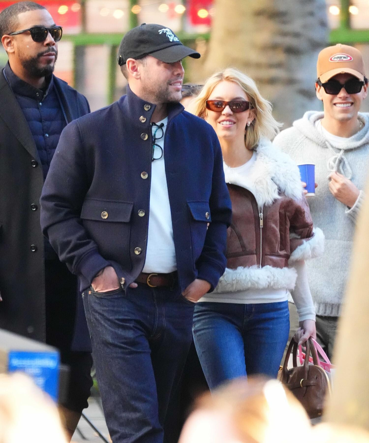 Sydney je nosila opuštenu modnu kombinaciju - traperice širokog kroja, usku majicu dugih rukava i smeđu kožnu jaknu s bijelim detaljima. Kombinaciju je upotpunila sunčanim naočalama i smeđom, kožnom torbicom. Braun je također snimljen u ležernom outfitu. Nosio je traperice, bijelu majicu i crnu traper-jaknu, uz kapu i smeđi remen.