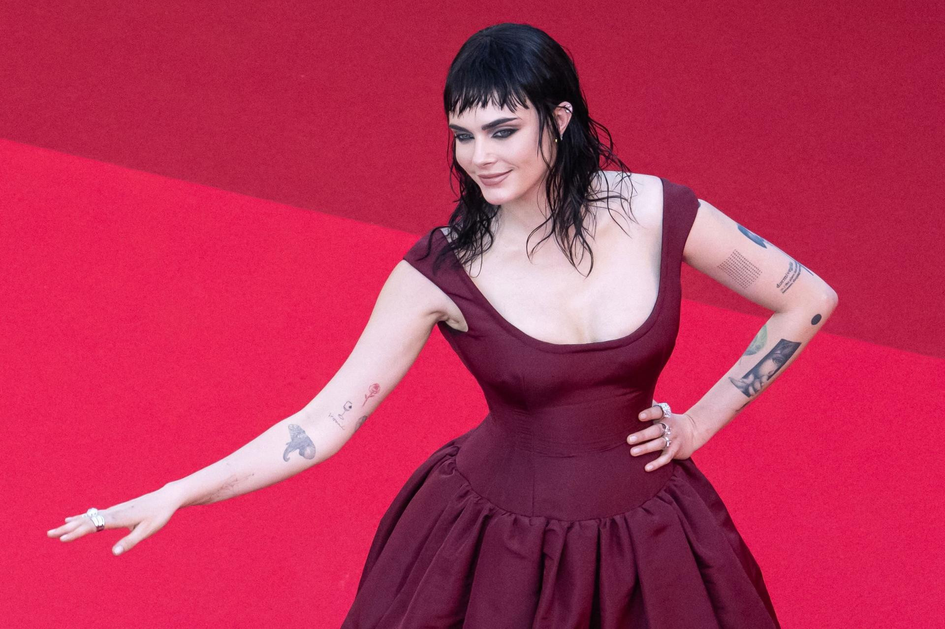 Manekenka je pokazala svoju vitku figuru u naizgled jednostavnoj bordo haljini uz koju je nosila crne štikle. U haljini je istaknula svoje tetovaže, a njezinom izdanju doprinijela je i tamna šminka.