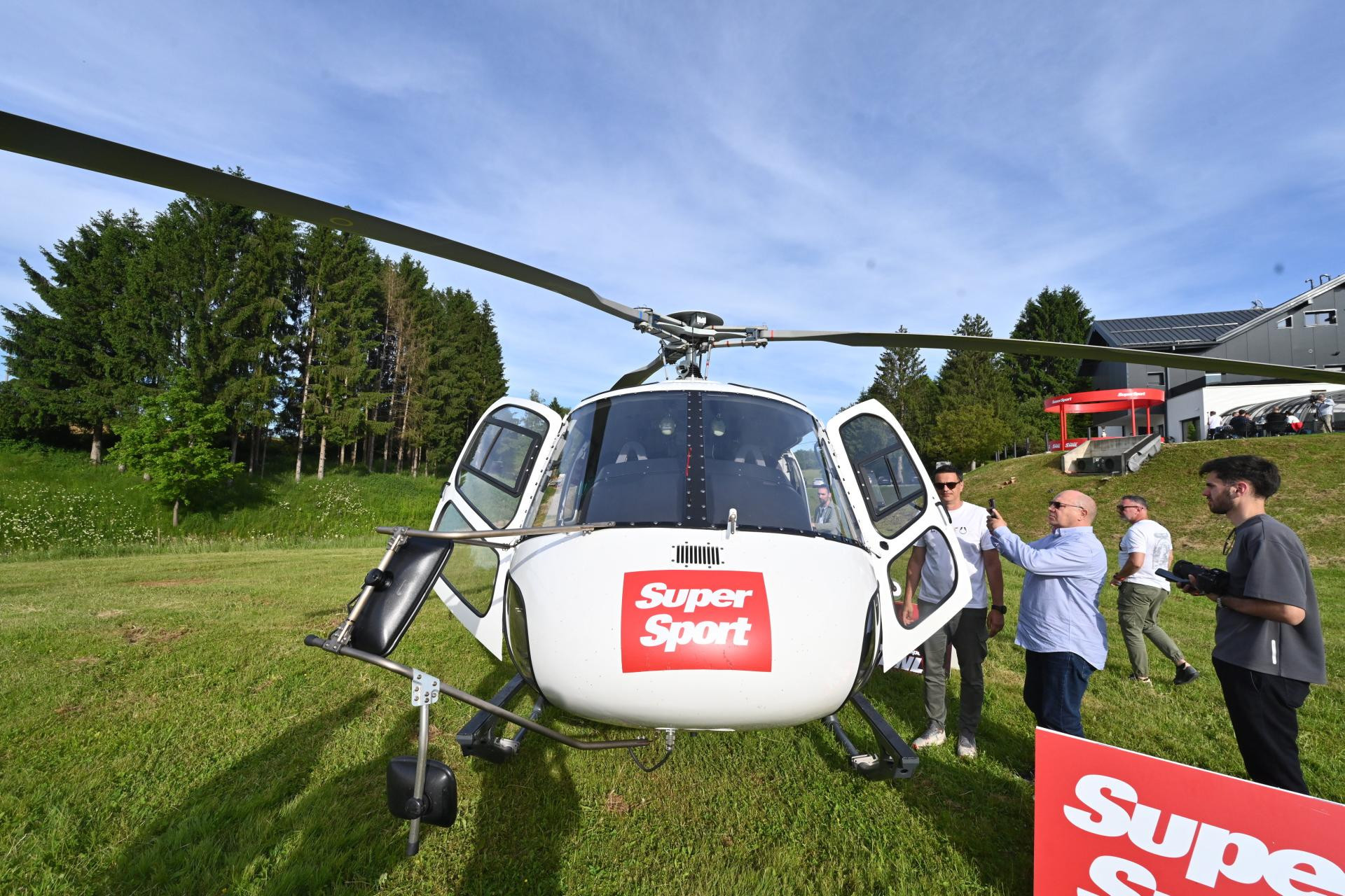 Airbus AS350, helikopter slovenskog FlyCom Aviationa, sletio je na ledinu goranskog resorta na poluvremenu tri utakmice. Pehar koji će biti uručen pobjedniku Super Sport HNL-a bio je izložen ispred hotela, a u holu su stajale medalje. Dovezli su ih predsjednik HNS-a Marijan Kustić te povjerenik HNS-a za sigurnost Jurica Jurjević. Čekao se kraj utakmica, tek tada je pilot znao u kojem će pravcu uzletjeti. Pravac - Rijeka!