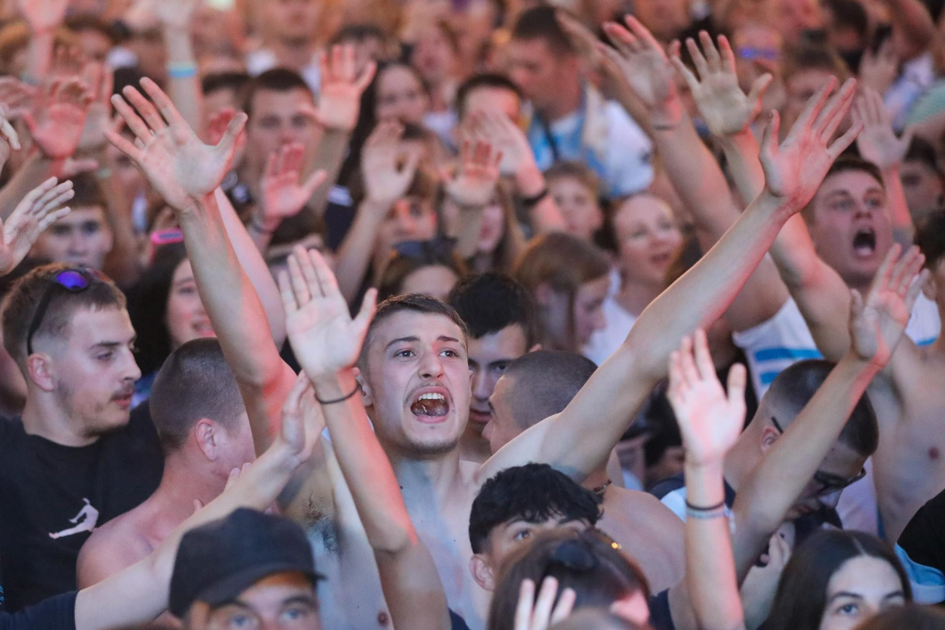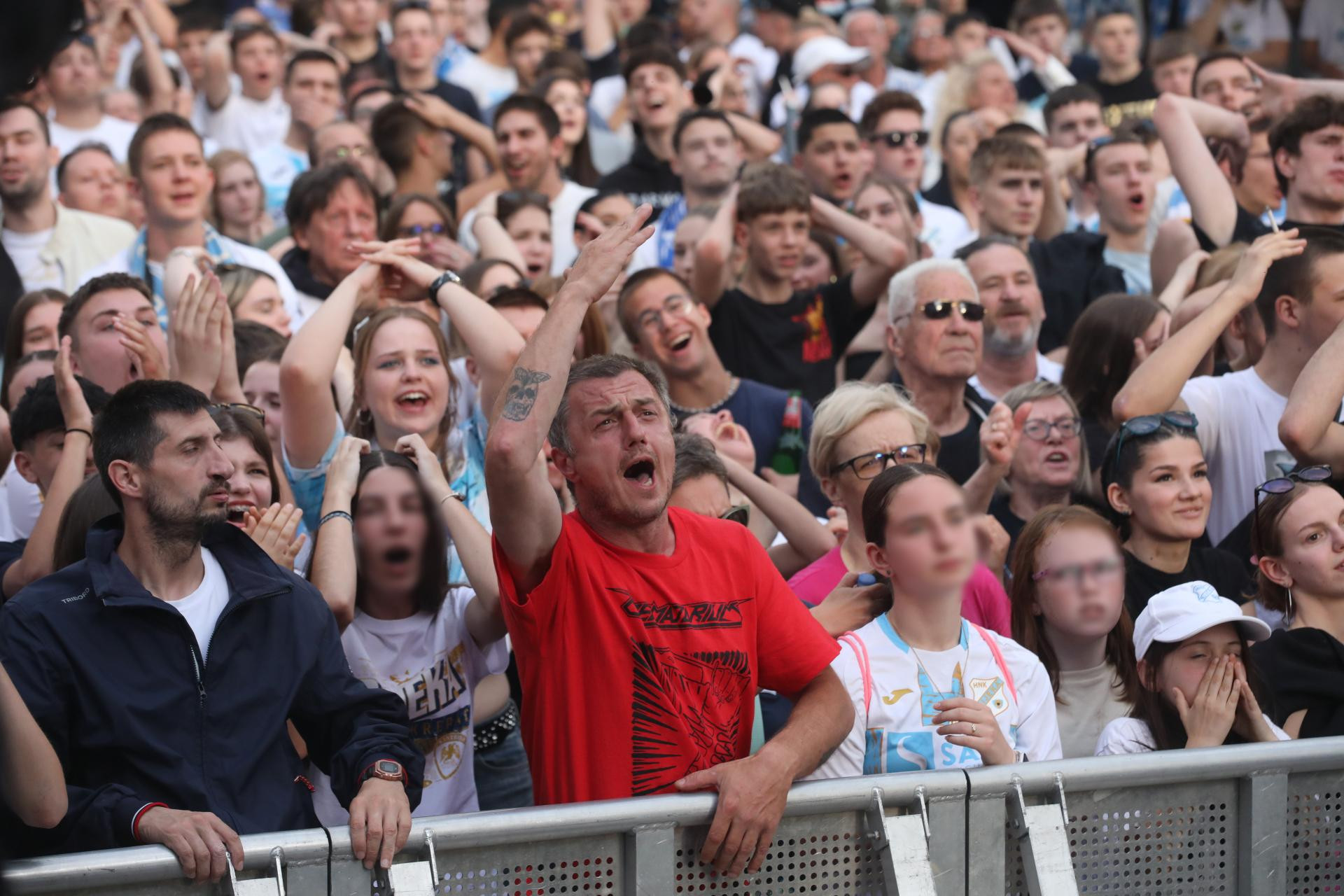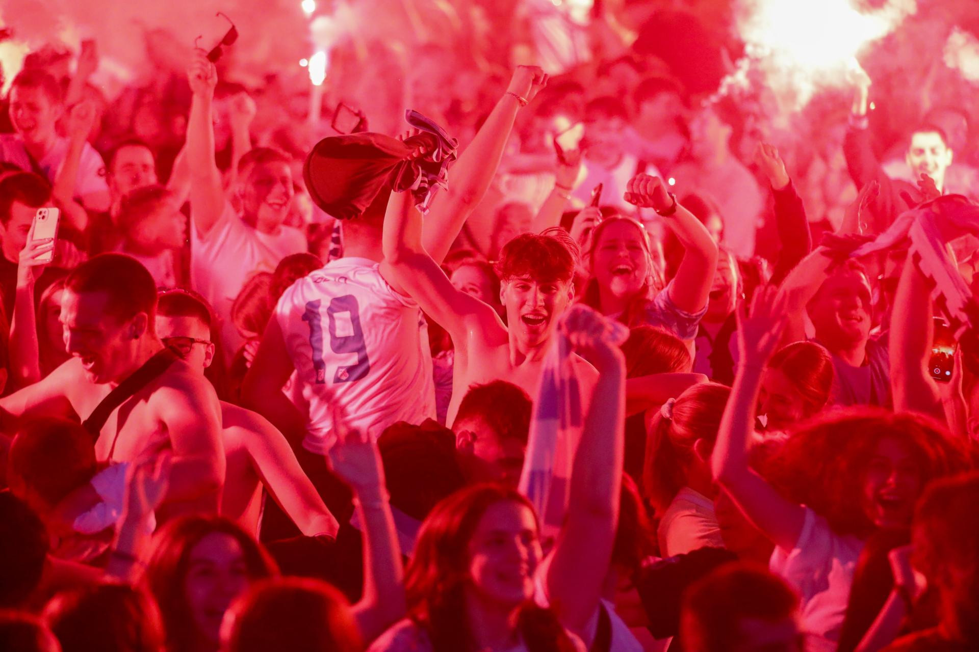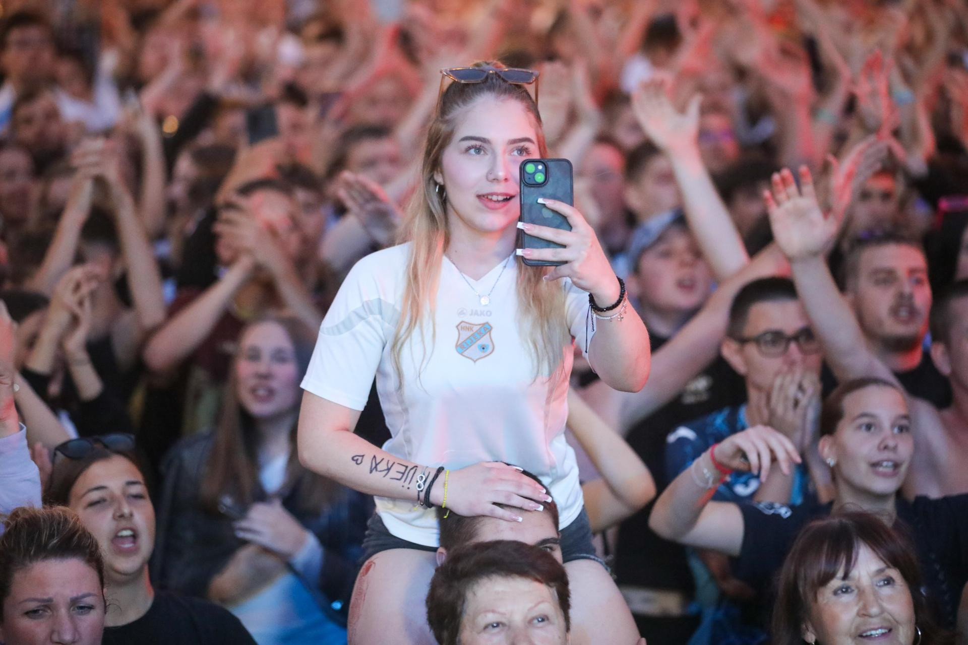 Tousće navijača slavi pobjedu Rijeke nad Slaven Belupom i osvajanje Hrvatskog nogometnog kupa. Malo je reći da je atmosfera vatrena.